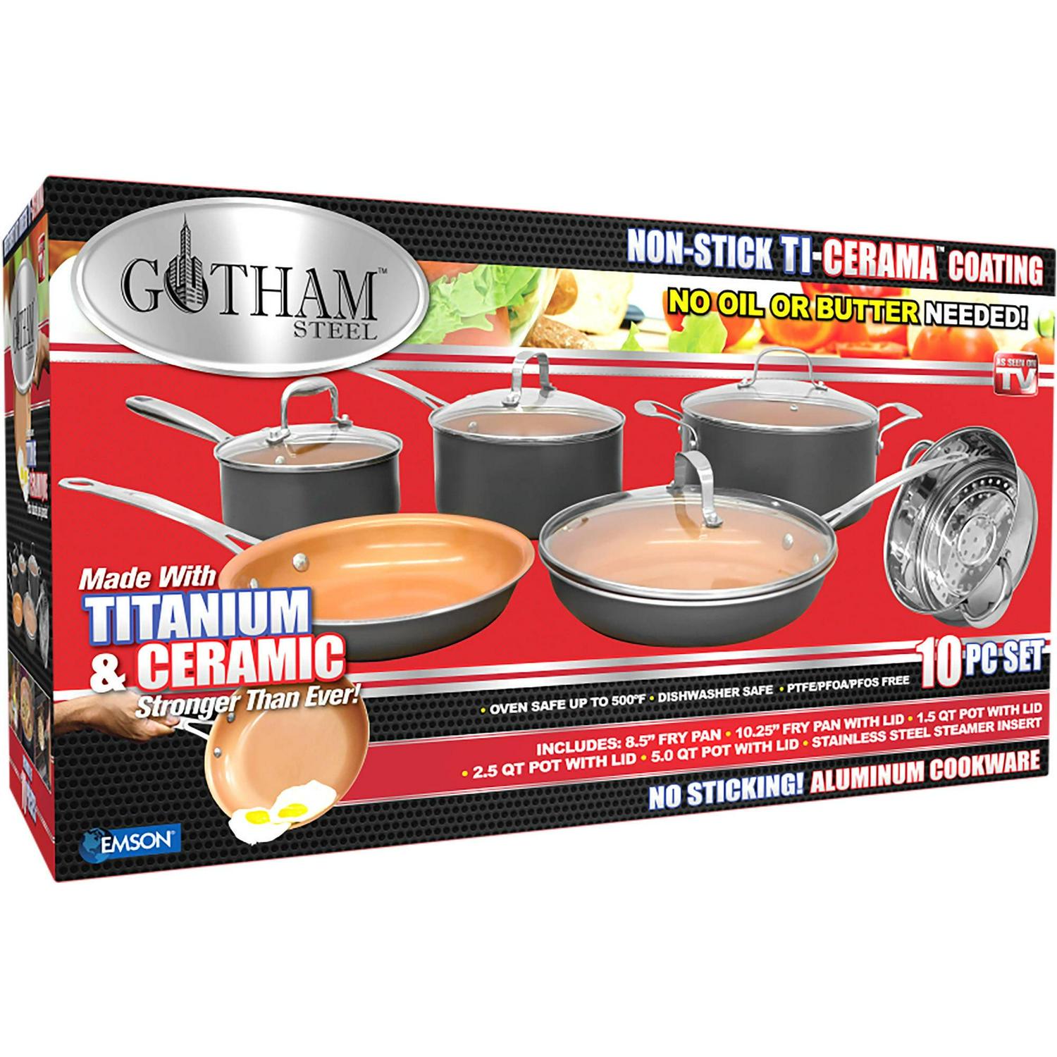 – HEALTHY & NON-TOXIC the Gotham Steel Ti-Cerama coating is free of PFOA, PFOS, lead & cadmium for a healthy and safe experience day in and out.