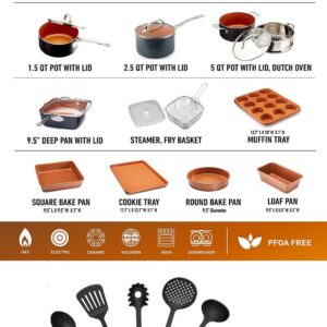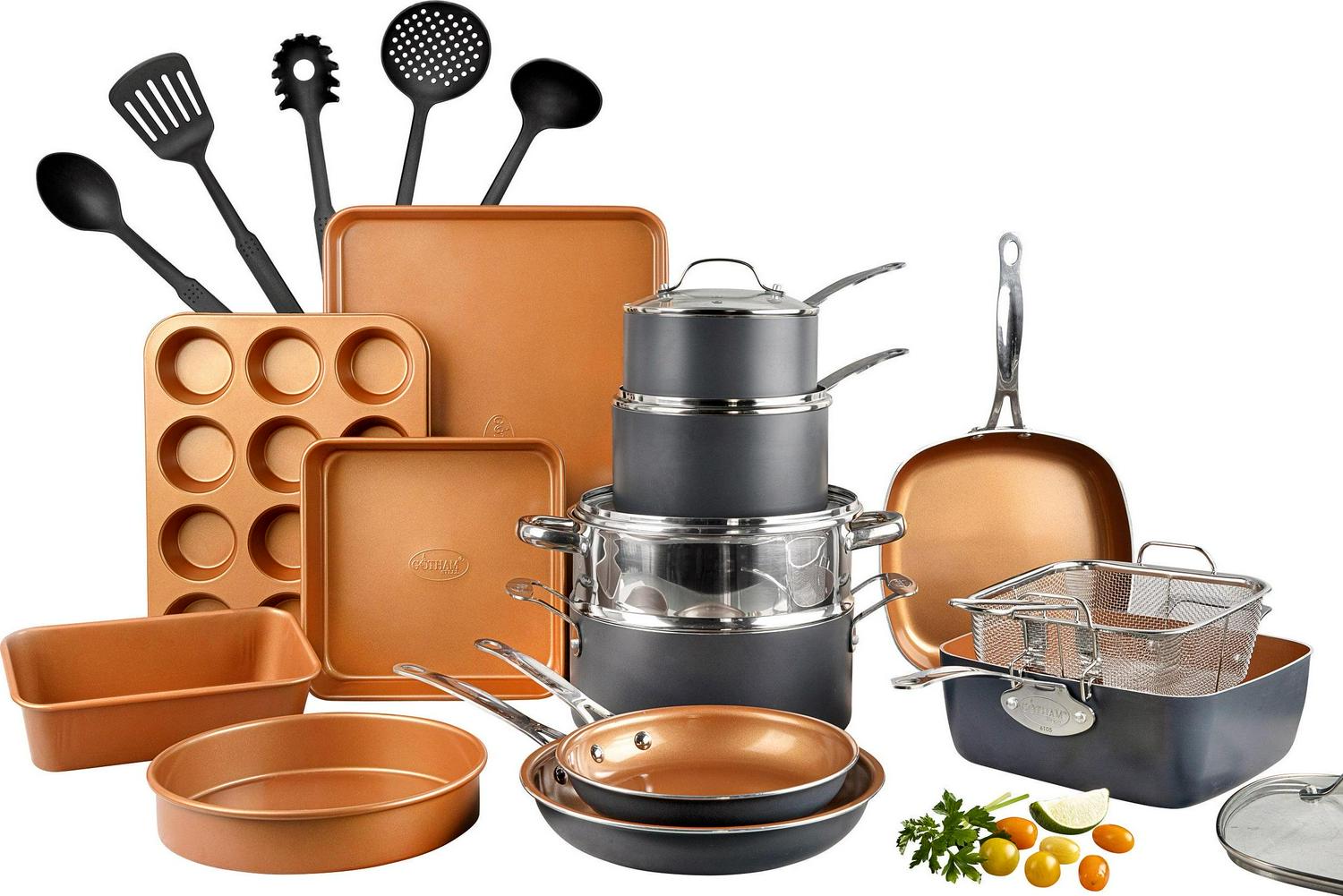 Gotham Steel Kitchen-in-a-box 25 Piece Cookware set, Non-stick Pots and Pans with Utensils, Graphite/Copper