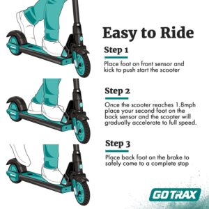 – Two Ways to Have Fun – The GOTRAX Electric Scooter can be used as both electric scooter and kick scooter. First put one foot on the front button and kick push the scooter over 1. 8mph, then place the other foot on the gravity sensor to accelerate to 7. 5mph.