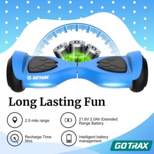 Gotrax Lil Cub Hoverboard 6.5 Wheels, Max 2.5 Miles, 6.2mph Self Balance for 44-88lbs Kids, Blue