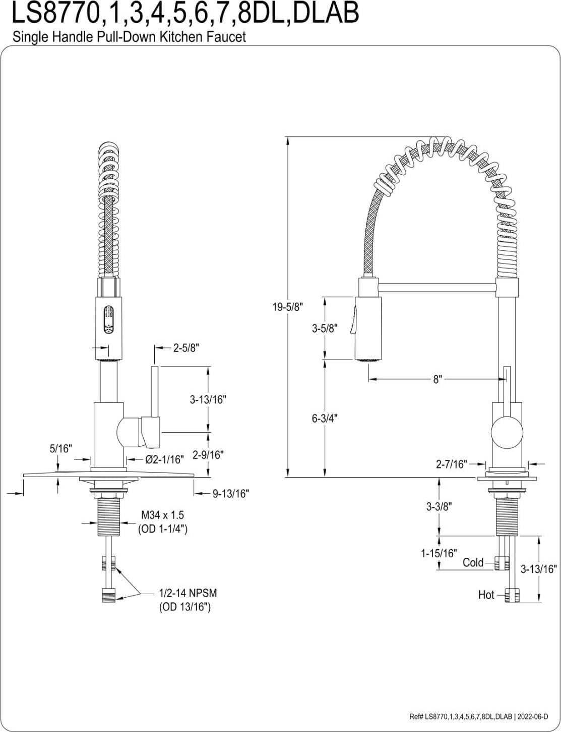 This faucet boasts bold, sleek design with its cylindrical styling. Designed for optimum versatility and functionality, the multiple spray settings and extendable spout of this pre-rinse faucet make for an enjoyable cleaning experience. Additionally, the rotating swivel spout leaves no area of the sink untouched as the industrial look of the exposed spring provides residential function. The matte black finish will also provide a long lasting and warm touch to your kitchen ensemble. Matching accessories are available for use.