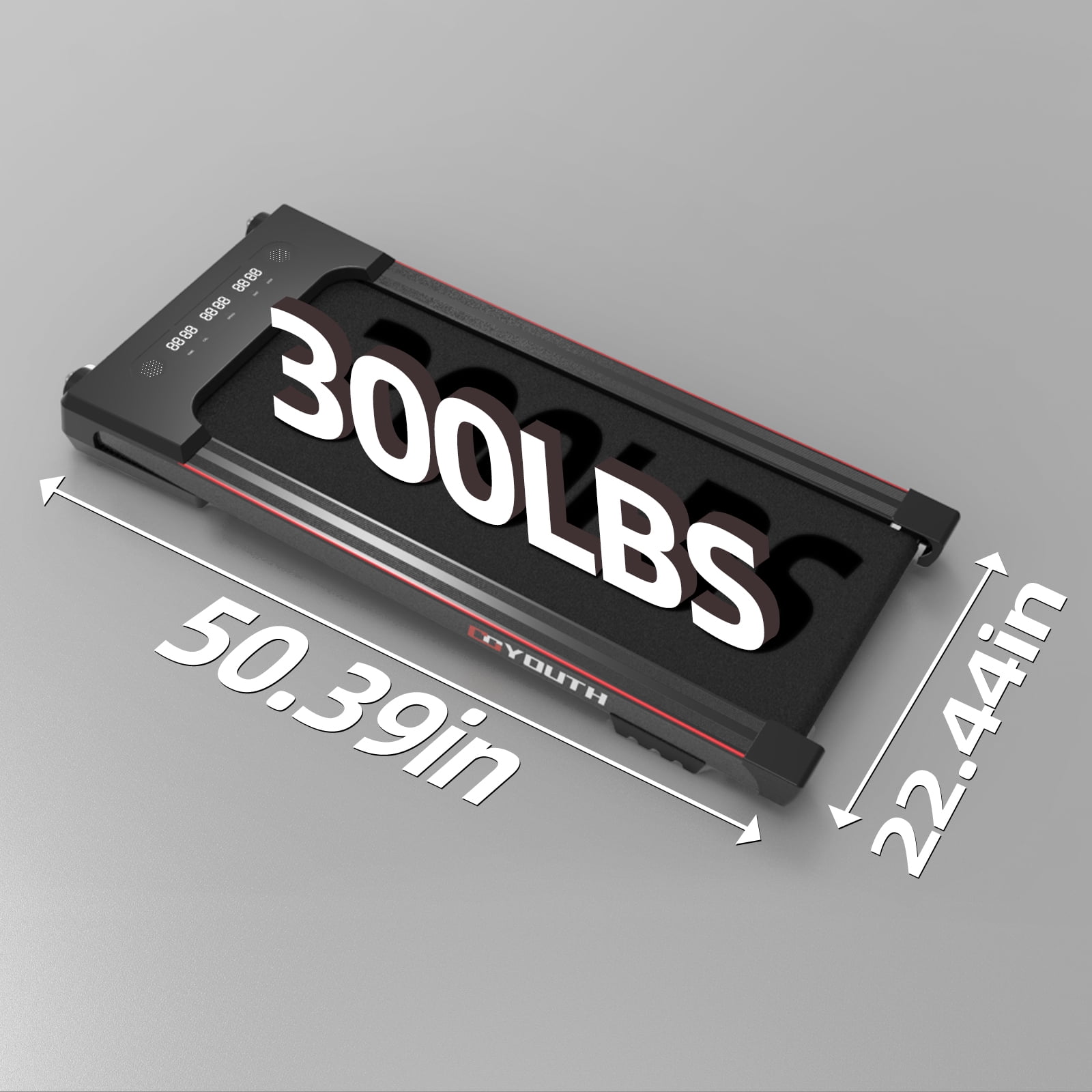POWERFUL 2.25HP QUIET MOTOR&LOW NOISE MOTOR: With a 2.25 HP powerful quiet Motor, the electric treadmill is perfect for running, jogging, and walking in the comfort of your home. With a durable steel frame and multi-layer shield design, the under-desk treadmill is shock-absorbing and noise-reducing, making your running quieter, safer, and more comfortable.NON-SLIP RUNNING BELT & SHOCK REDUCTION SYSTEM: This walking treadmill with a 15.75”x41.34” large-area shock-absorbing and non-slip rubber running belt makes your running quieter, safer, and more comfortable. Available in 0.5 to 6 MPH Speed levels, the treadmill machine is suitable for running and very under the table for office use.MULTI-FUNCTION DISPLAY&WITH BLUETOOTH SPEAKER: The LED display clearly shows time, calories, steps, speed, and distance, monitoring your progress in real-time and keeping your movement data briefly. Connect the treadmill to your phone through Bluetooth, so you can play music while you are exercising.REMOTE CONTROL&SPEED LEVELS: The independent remote control can efficiently control and adjust the running speed and improve running safety. Available in 0.5 to 6 MPH Speed levels, this walking treadmill allows you to select different speeds based on your physical condition and exercise. Maximum weight: 220 lbs.PROGRAM&EASY TO MOVE AND STORE: There are also 12 programs available for you to choose from, and these easy-to-use exercise programs help to improve your cardiovascular fitness, boost your health, and burn fat. The built-in transport wheels make it easy to move and store this under a desk treadmill to save space.