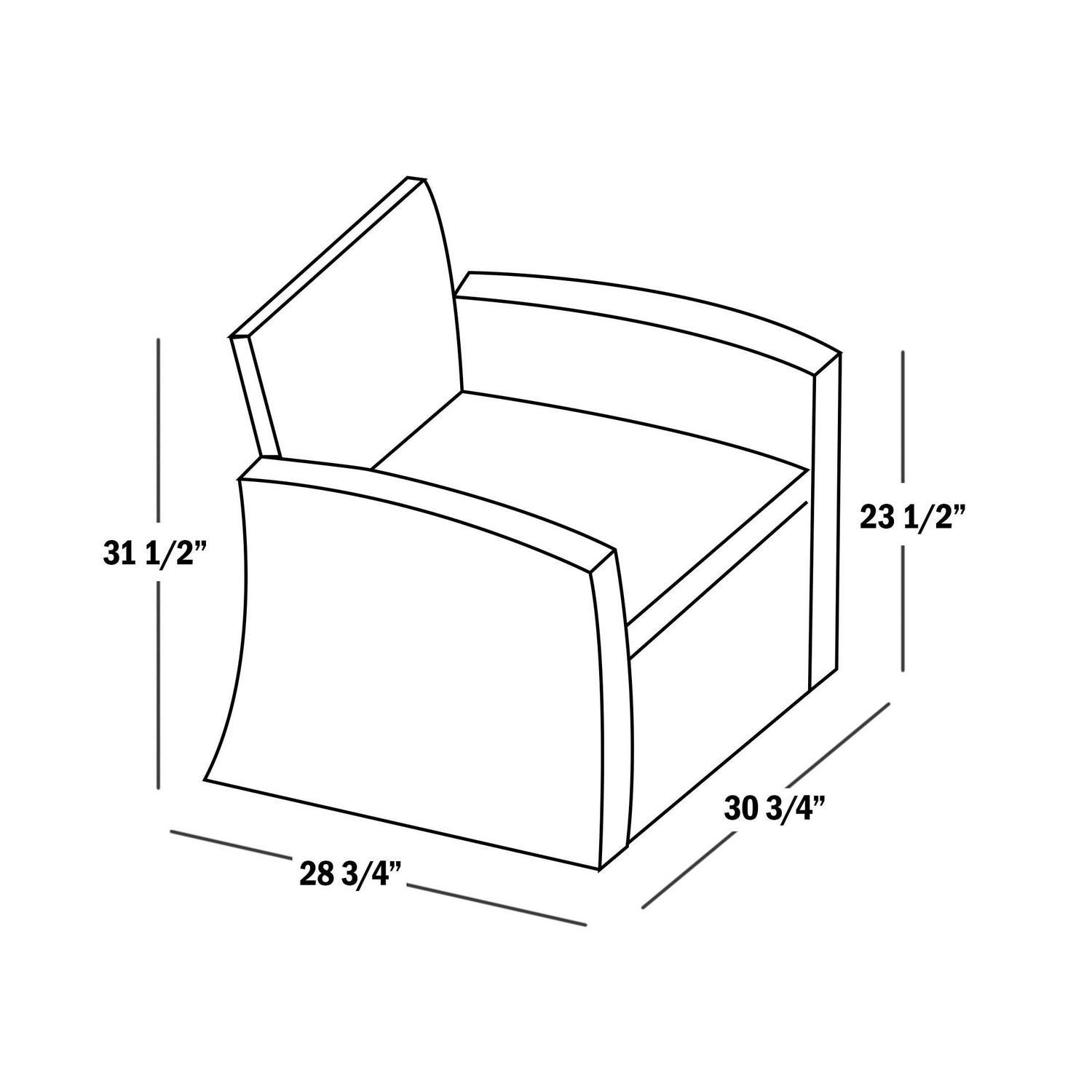- Armchair: 30.7 inches wide x 28.75 inches deep x 31.5 inches high