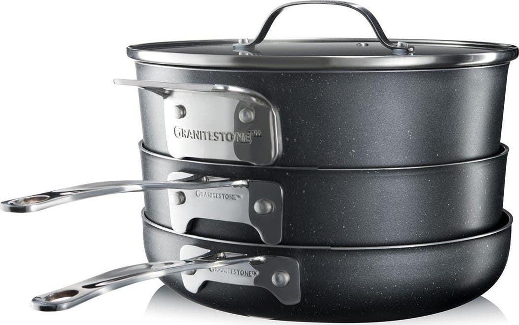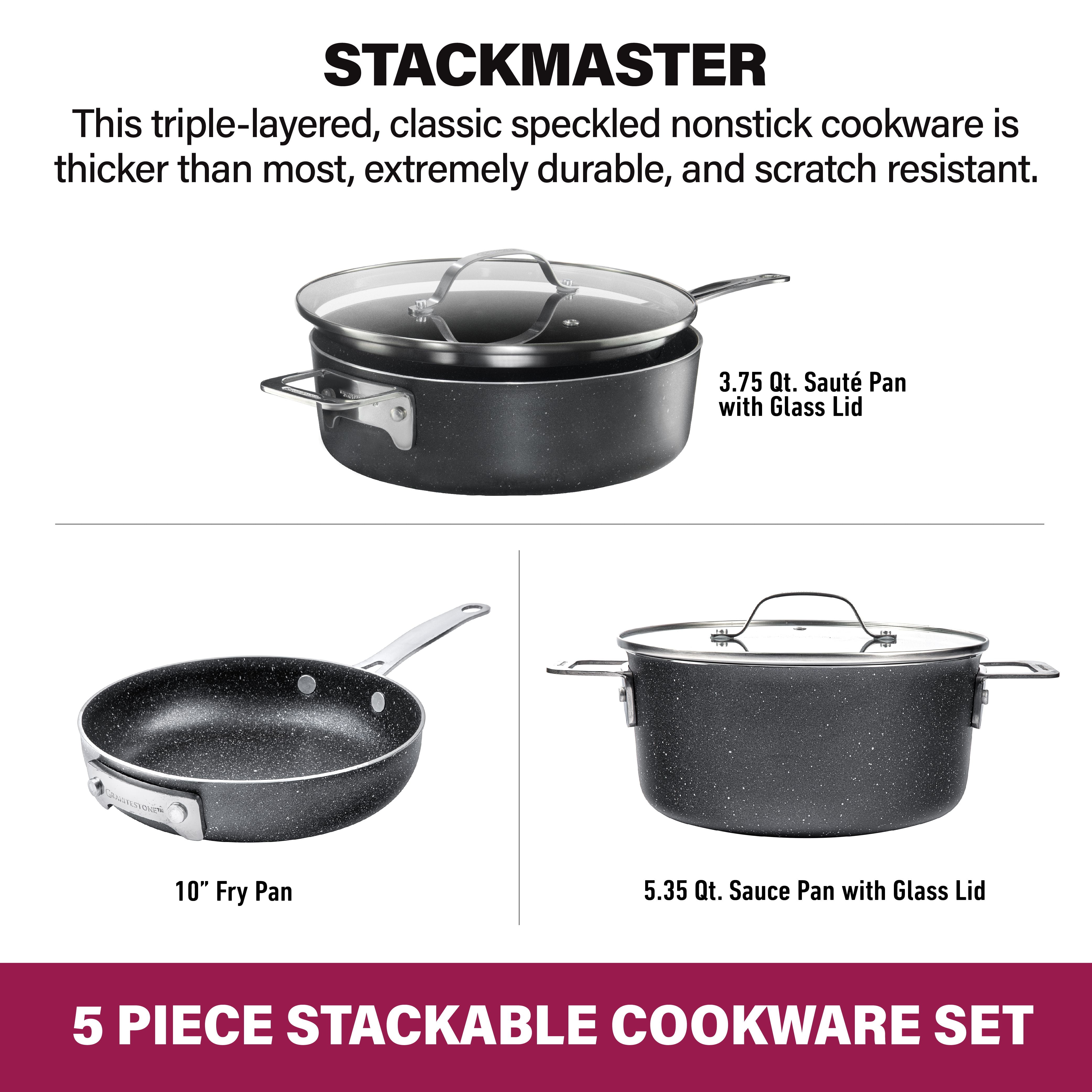 - Granitestone Stackmaster five-piece nonstick cookware set