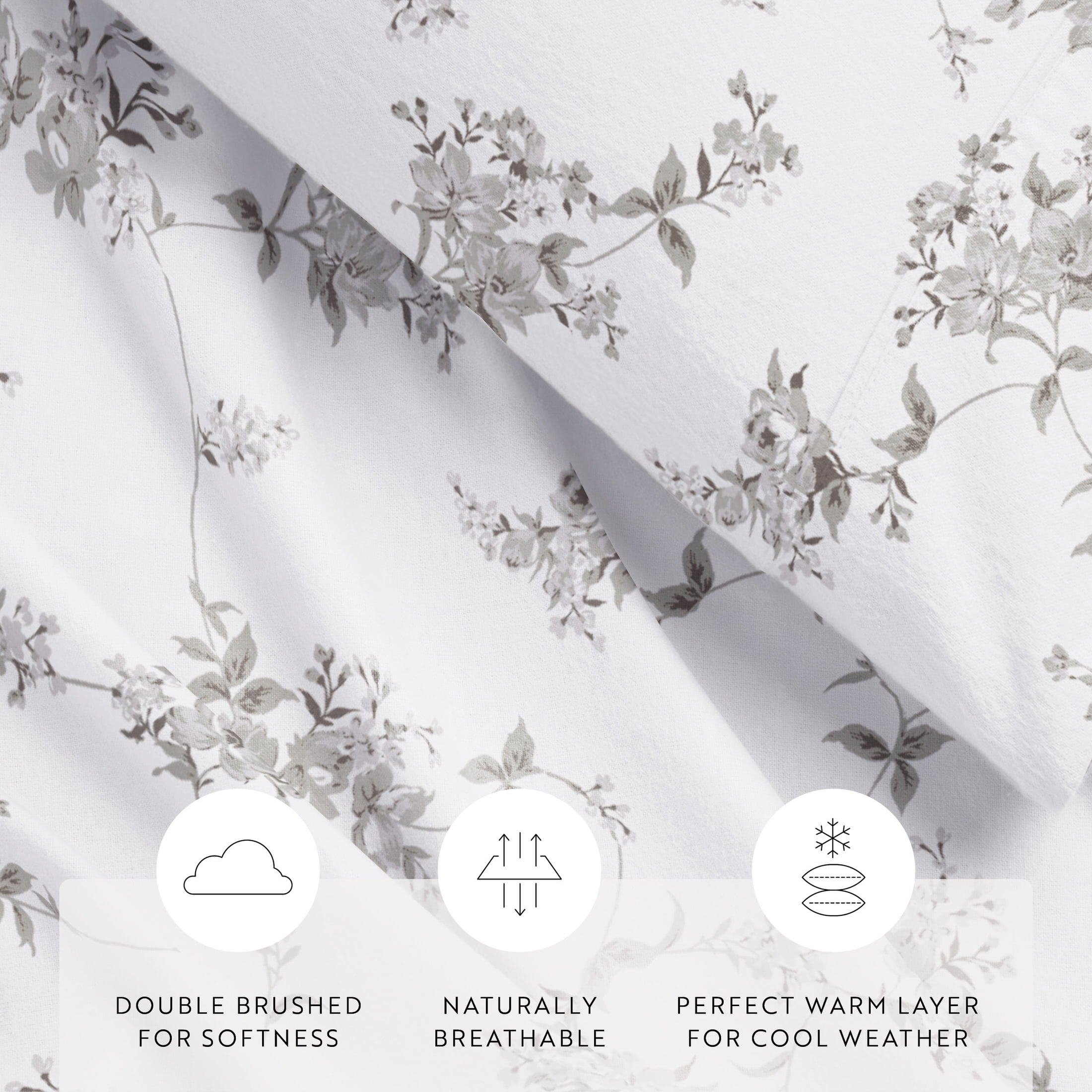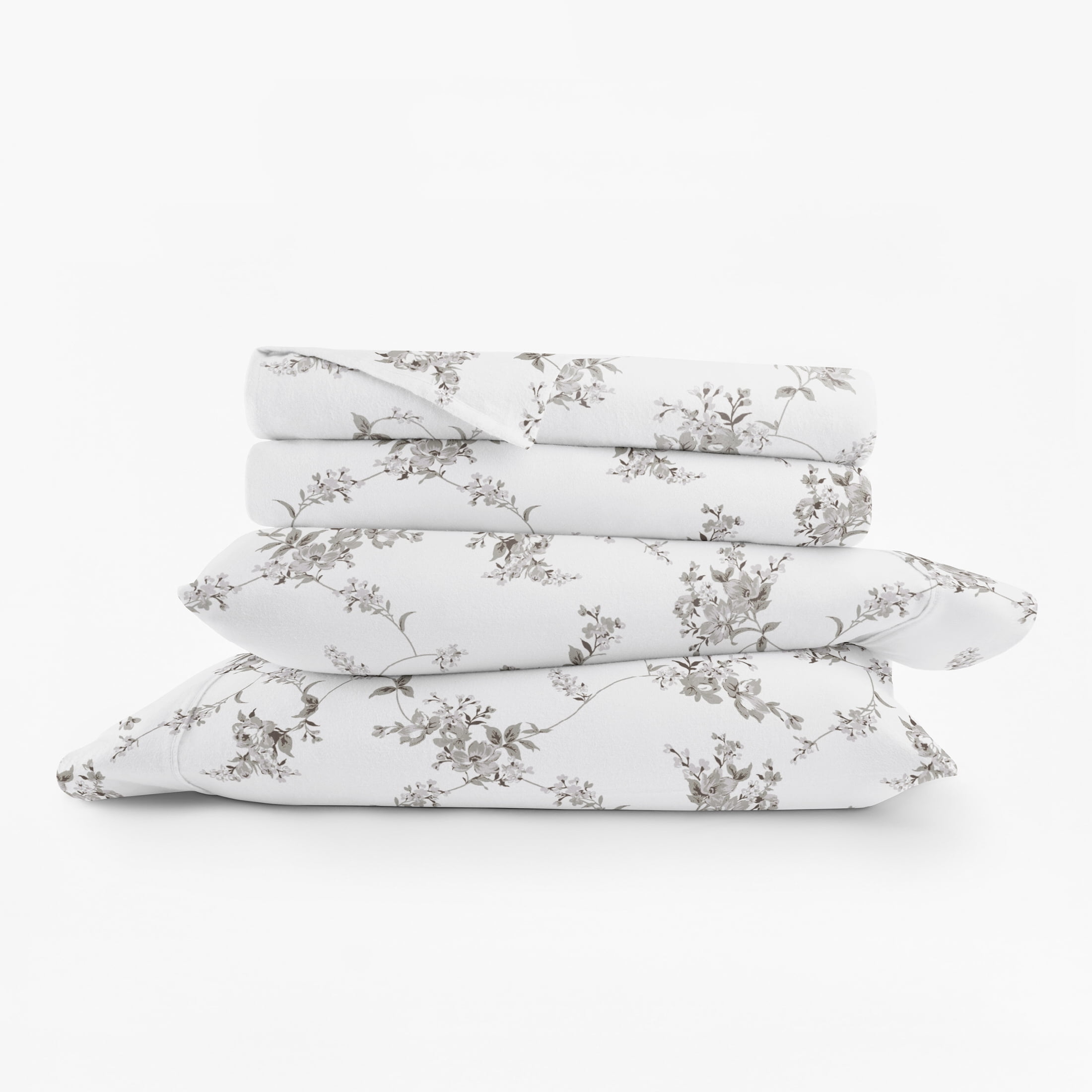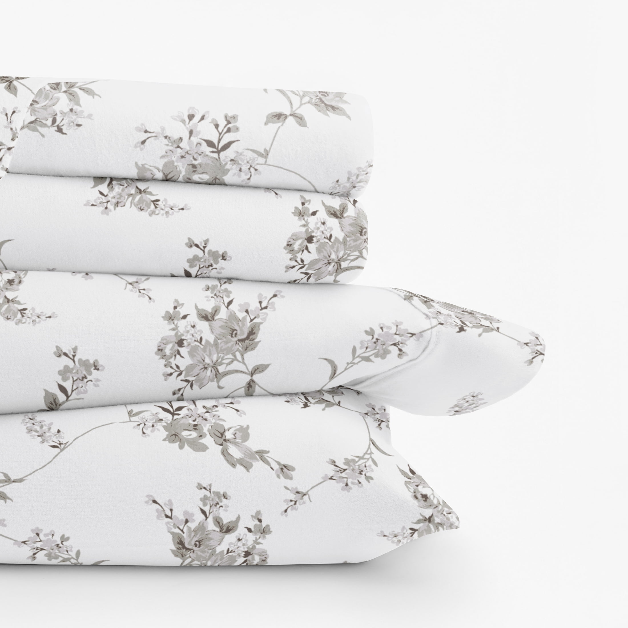 Gray Sylvan Rose 4 Piece 100% Cotton Flannel Deep Pocket Sheet Set, King, by Noble Linens