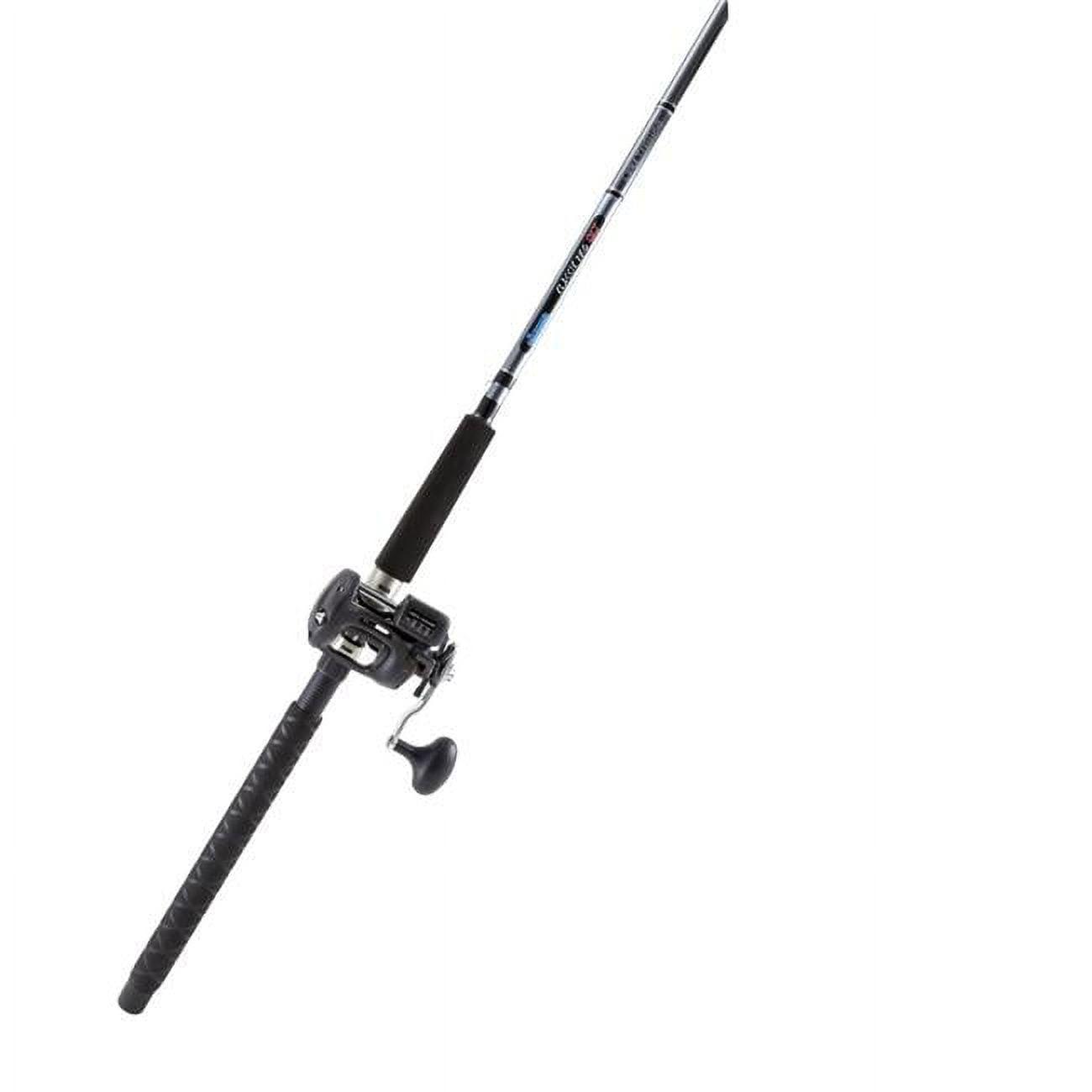 Okuma Star Drag Downrigger Trolling Combo has a 2-piece 8’6″ length medium rod and comes with the CLX-300La Reel. The Great Lakes Trolling combo has a durable E-glass blank construction with double footed aluminum oxide guides. Reel has machine cut brass gearing, stainless steel hooded reel seats and corrosion resistant graphite spool.