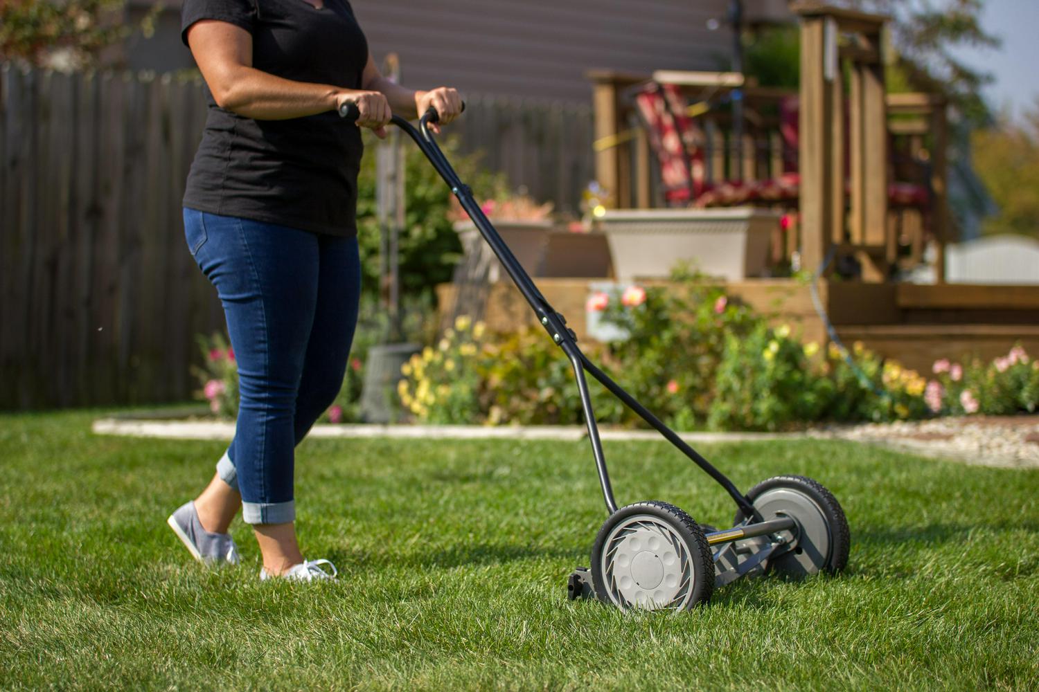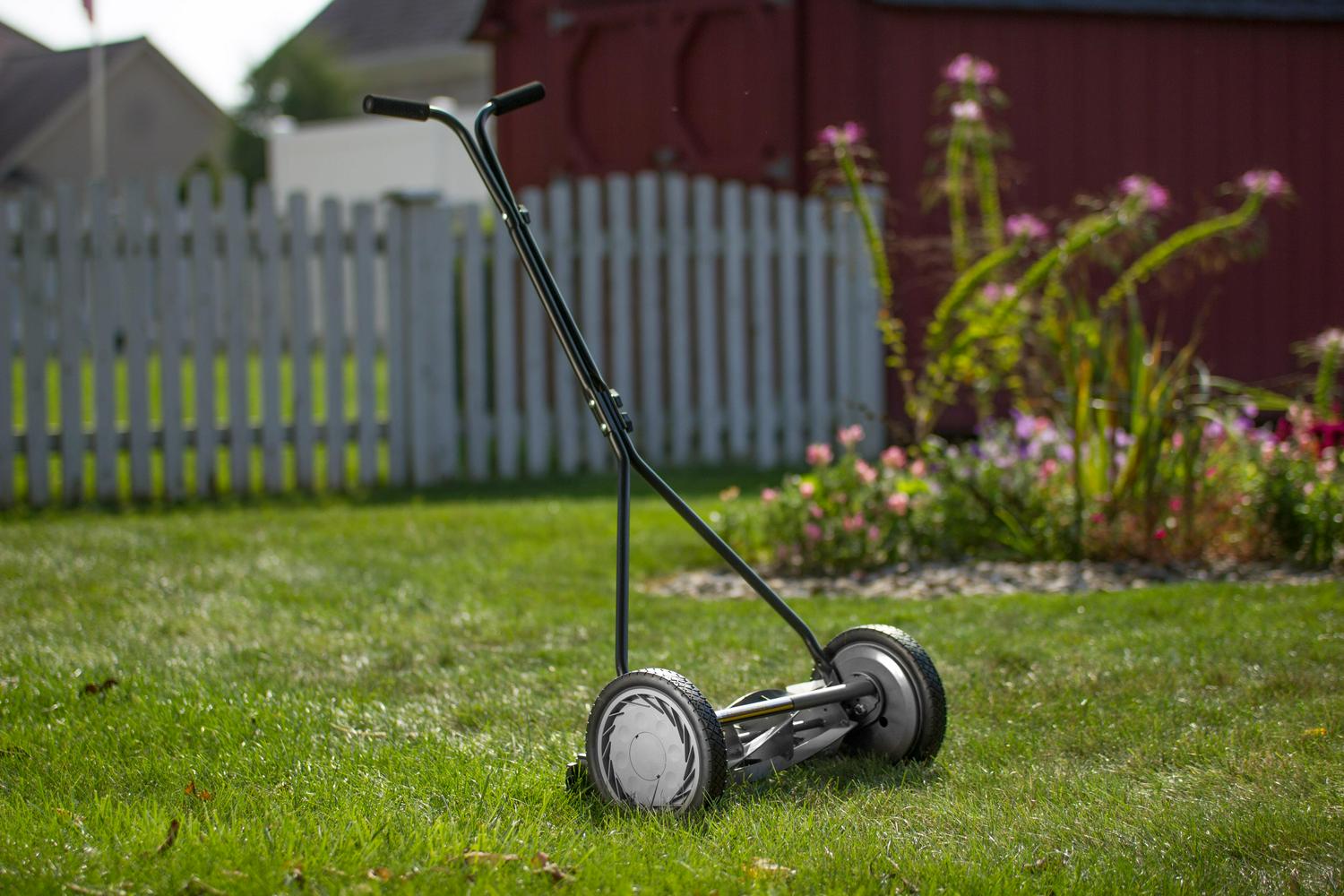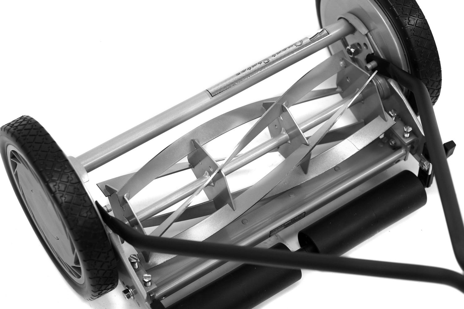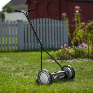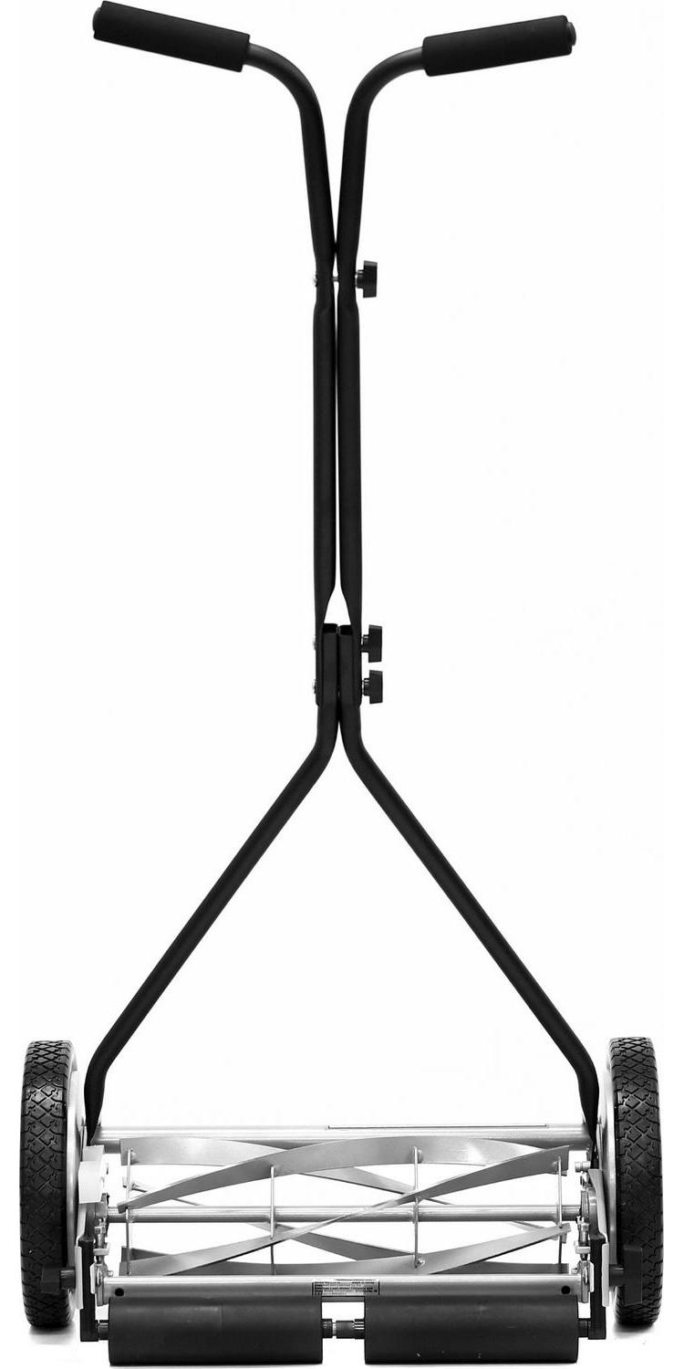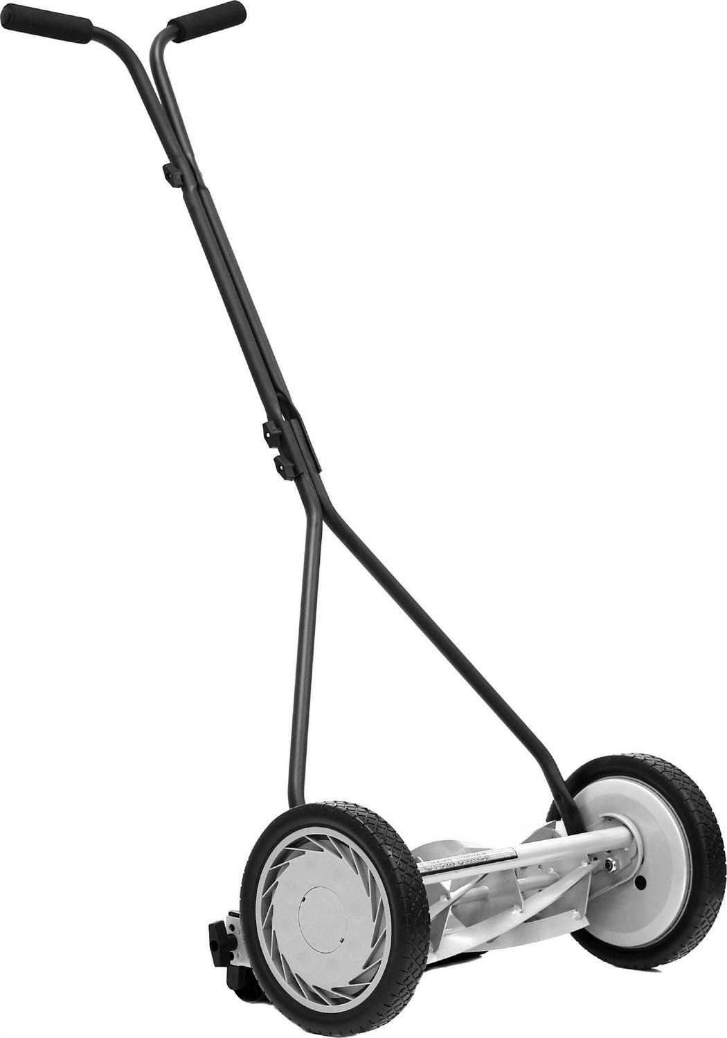 The Great States 415-16 reel mower has a 14 cutting width with a 5 blade ball bearing reel. The T-Style handle comes with cushioned grips. No tools needed for assembly. Great States reel mowers don t have engines which means they don t produce emissions or make noise. Just the clean, quiet cut of the reel mower. Mow your lawn without disturbing the peace in the neighborhood. The only sound a reel mower will make is a satisfying quiet snip as the mower cuts the grass. Reel mowers love to gobble up grass and turn into clippings, but some grasses may be difficult to mow. Grass that is ultra-thick can form a heavy carpet on the ground that bogs down reel mowers and gums up their works, this is the same type of grass that causes gas mowers to stall. For best results, maintain your grass at a reasonable height between mowing (3 to 4 ) Never cut off more than 1/3 of the plant length per mowing. This will allow for smoother operation, easier pushing and a cleaner, healthier cut for your lawn. Great States reel mowers are lightweight and easy to maneuver. Due to the simplicity of reel mowers they work every time and are easy to store compared to alternative gas mowers. Pushing a Great States reel mower is a healthy solution for you and your lawn. Rotary mowers hack at grass blades, tearing vital fluids from them and leaving them open to disease and insect attacks. Great States reels snip the grass, cutting each blade like a pair of scissors. There is no ripping or tearing, it s a precise, clean cut that makes for a greener, healthier and more attractive lawn. Smooth-spinning blades, easy-roll wheels, and height adjustability combine to deliver the perfectly-groomed look you want, no hassle required!