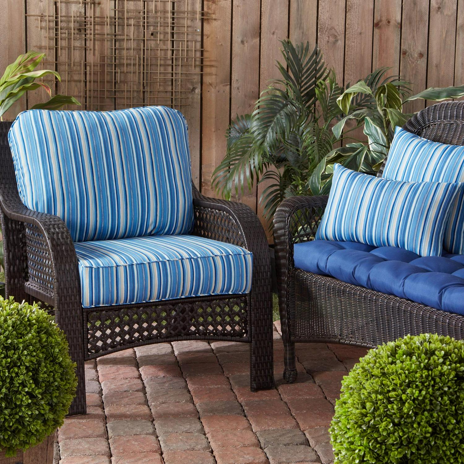 Greendale Home Fashions 2-Piece Sapphire Stripe Outdoor Deep Seat Cushion Set