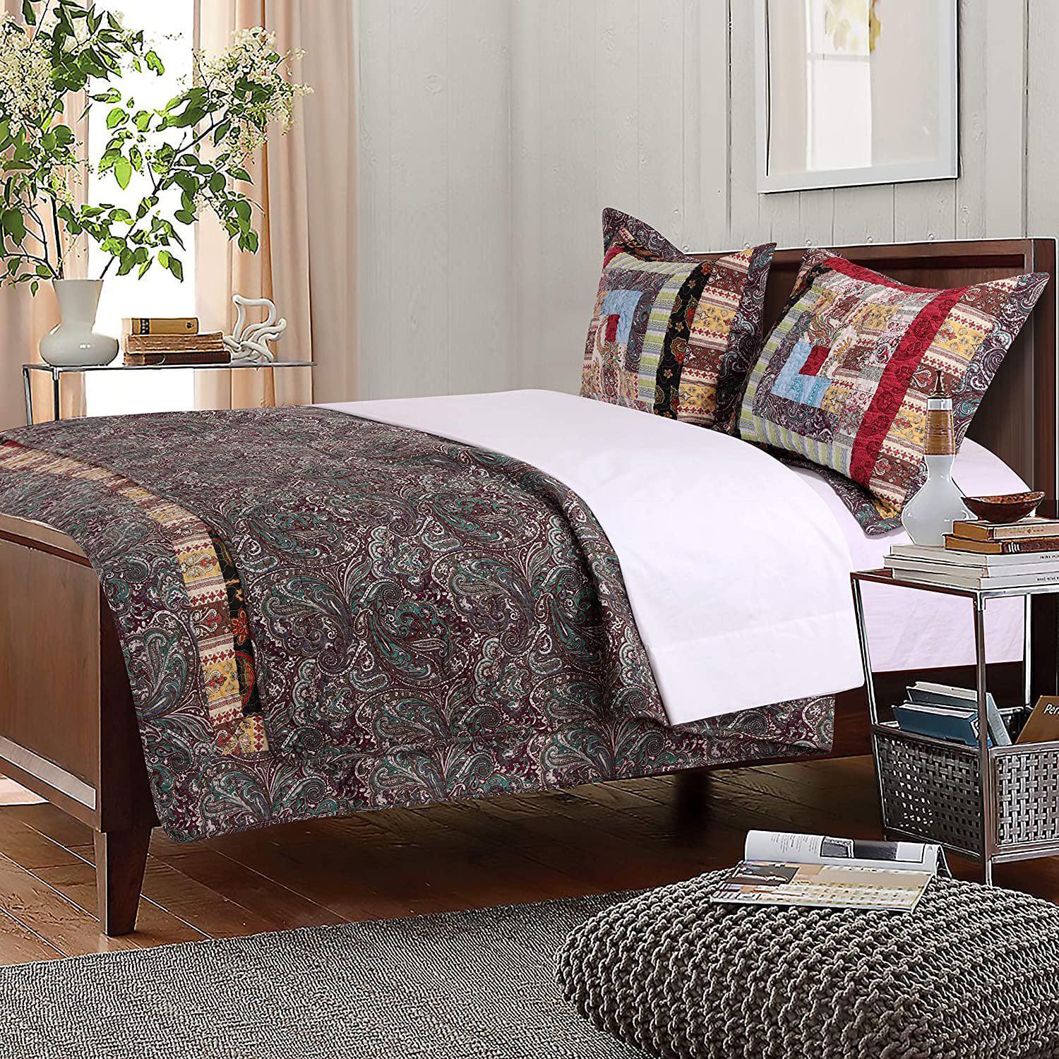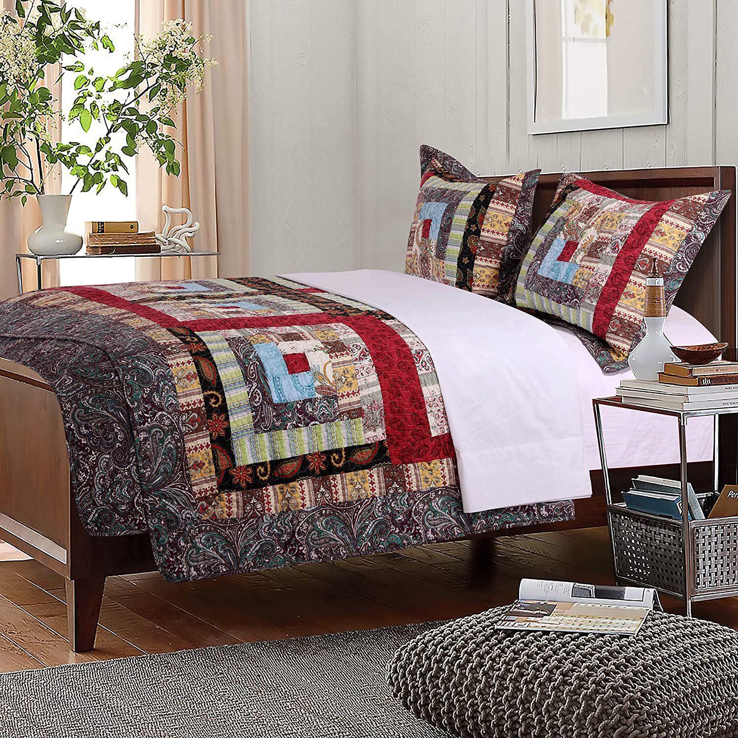 Add rustic charm to your bedroom with this Colorado Lodge Quilt Set by Greenland Home This quilt set features contemporary and country fabrics assembled in a traditional log cabin pattern. This heirloom-quality quilt delivers authentic patchwork styling and reverses to a coordinating print for two looks in one. Pieces are made of prewashed and preshrunk cotton and are oversized for better coverage on today’s deeper mattresses. Set includes quilt and two pillow shams (one with twin size).