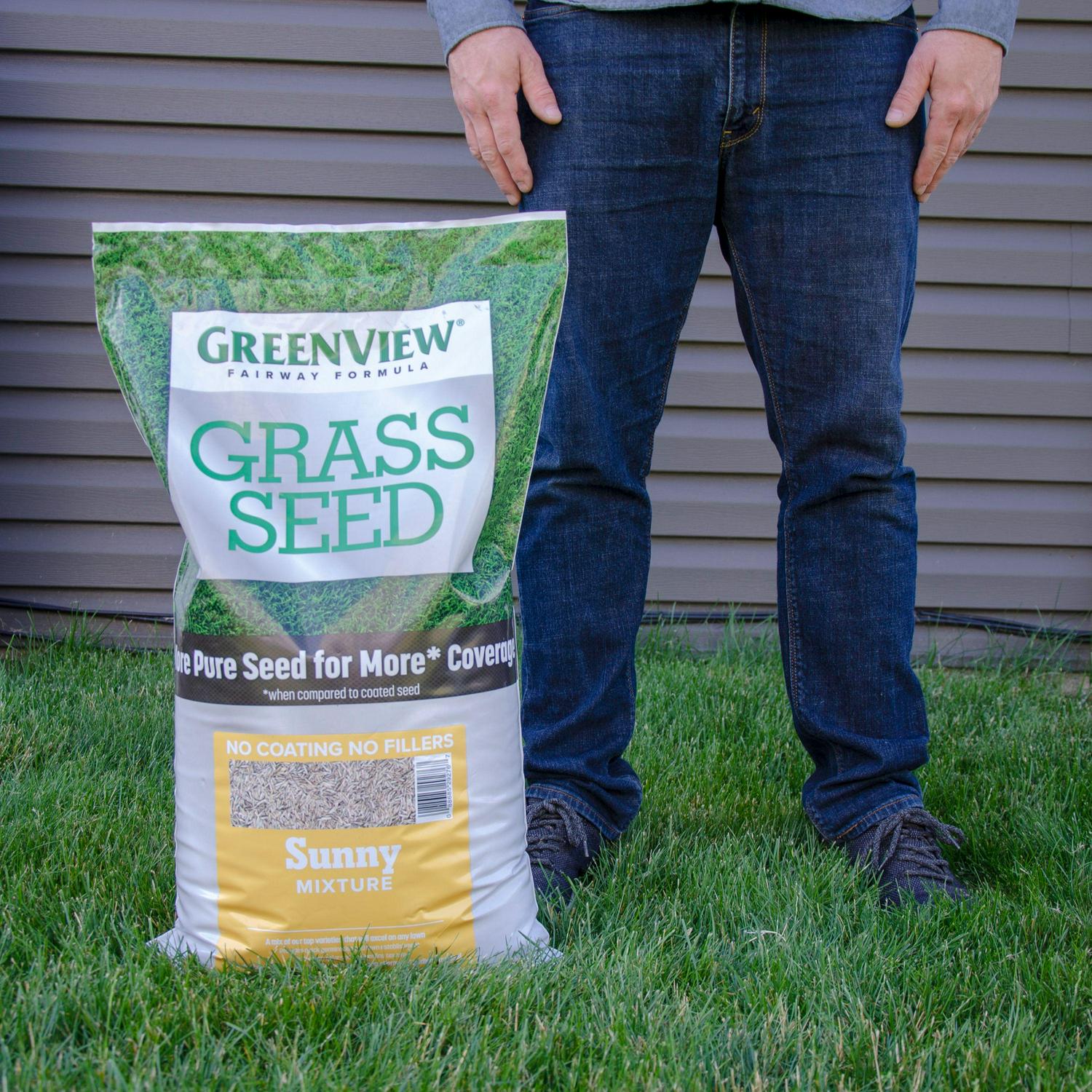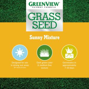 GreenView Fairway Formula Sunny Grass Seed Mixture is a top-quality cool season mixture of grass seed that will grow a thick, lush green lawn meant to thrive in hot, sunny locations where few trees are present. This new generation seed will ensure that even on the busiest and hottest days during the summer, your lawn will remain strong, green and luxurious. Uncoated seeds ensure maximum seed coverage; 20 lb. bag provides 5,000 sq. ft. coverage if seeding new lawn; 10,000 sq. ft. coverage if overseeding existing lawn
