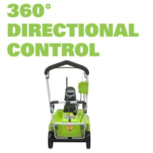 - Greenworks 2600502 has 7 in. wheels for greater mobility