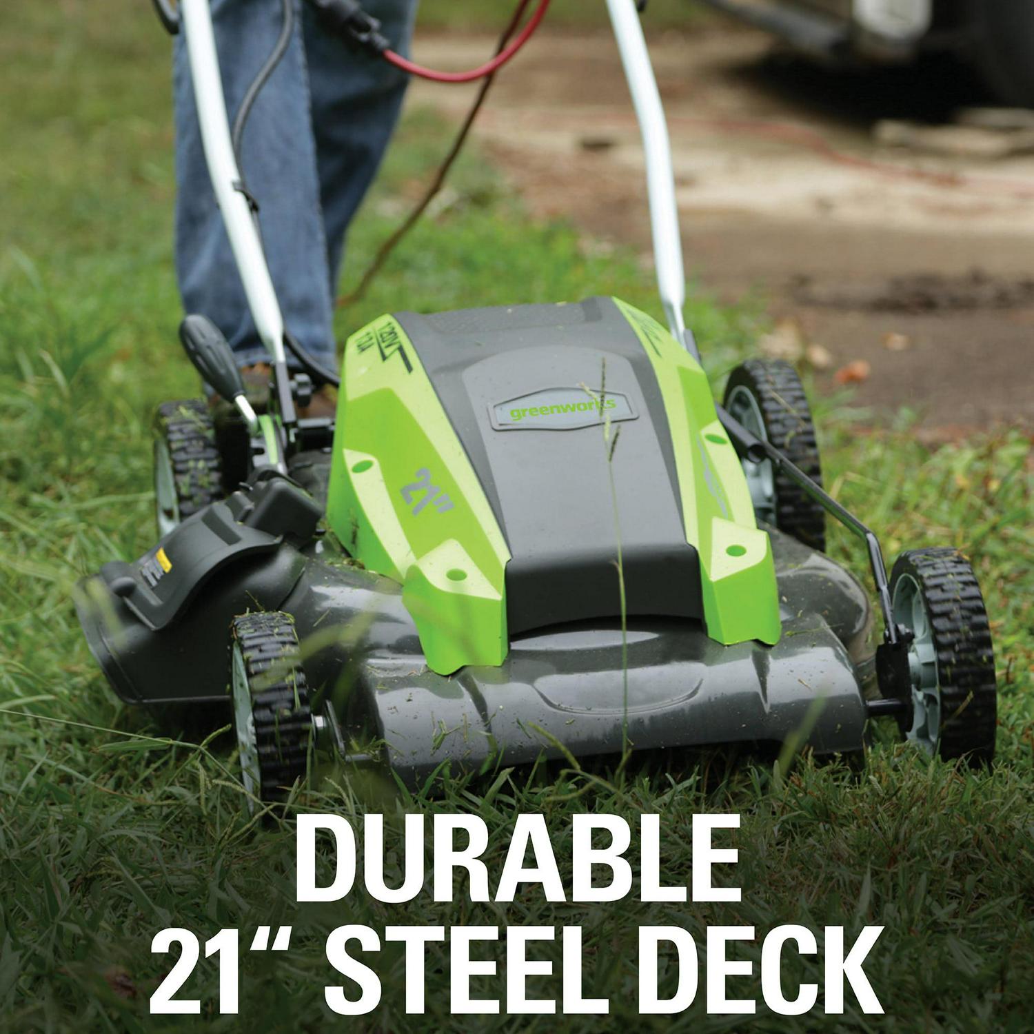 – New Greenworks 13 Amp 21″ Corded Electric Walk-Behind Push Lawn Mower: