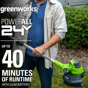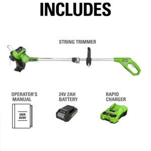 Greenworks 24V 12-inch Cordless String Trimmer with 2.0 Ah Battery and Charger, 21342