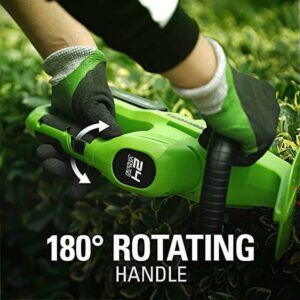 – Ergonomic rotating rear handle allows for greater flexibility when trimming the sides of hedges or for long and complex jobs