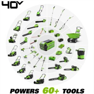 – High performance G-MAX 40V 4.0 Ah lithium-ion battery delivers fade-free power with no memory loss after charging
