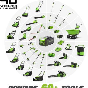 The Greenworks 40V lithium-ion platform powers over 40 outdoor products, including lawn mowers, blowers, string trimmers, chainsaws, hedge trimmers, and much more! The 40V lithium-ion battery provides the power you need, and delievers fade-free power with no memory loss after charging. The outdoor power equipment allows you to tackle up to 1/2 acre with the available 2Ah, 2. 5Ah, 3Ah, 4Ah, 5Ah, and 6Ah batteries. USB ports are integrated into the BAF701, BAF702, L-300, BAF704, BAF705, L-600 batteries, making it a portable charger for phones, tablets, and other compatible electronic accessories. The Greenworks 40V platform comes with a 3 year tool / battery to protect your investment