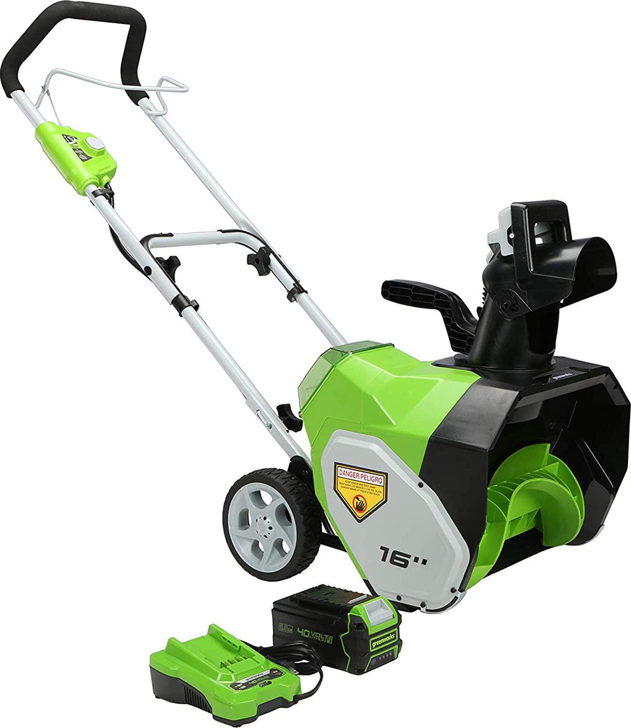 Greenworks 40V 16 Cordless Snow Thrower with 5Ah USB Battery and Charger