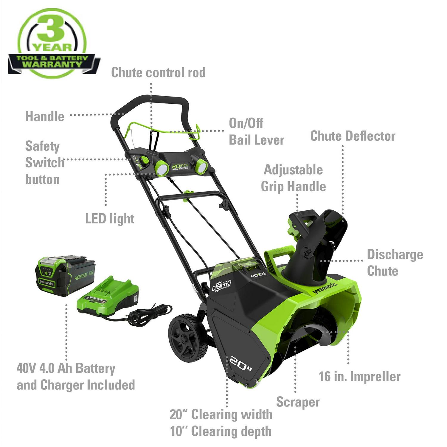 Features of Greenworks 40V 20-inch Cordless Brushless Snow Blower:
