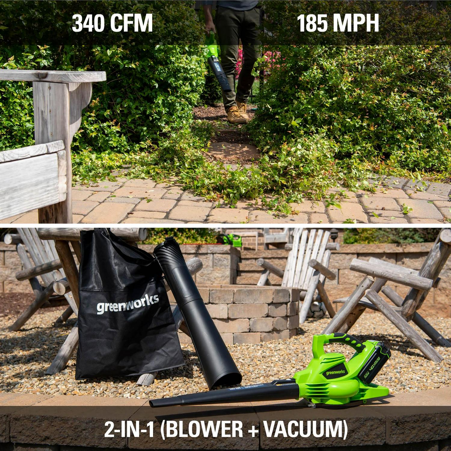 Greenworks 40V 340 CFM Leaf Blower/Vacuum with 4.0 Ah Battery and Charger, 24322