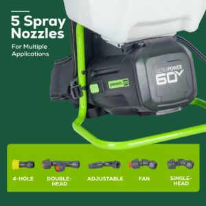 Greenworks 60V 4 Gallon Cordless Battery Backpack Sprayer with 2.0Ah Battery and Charger