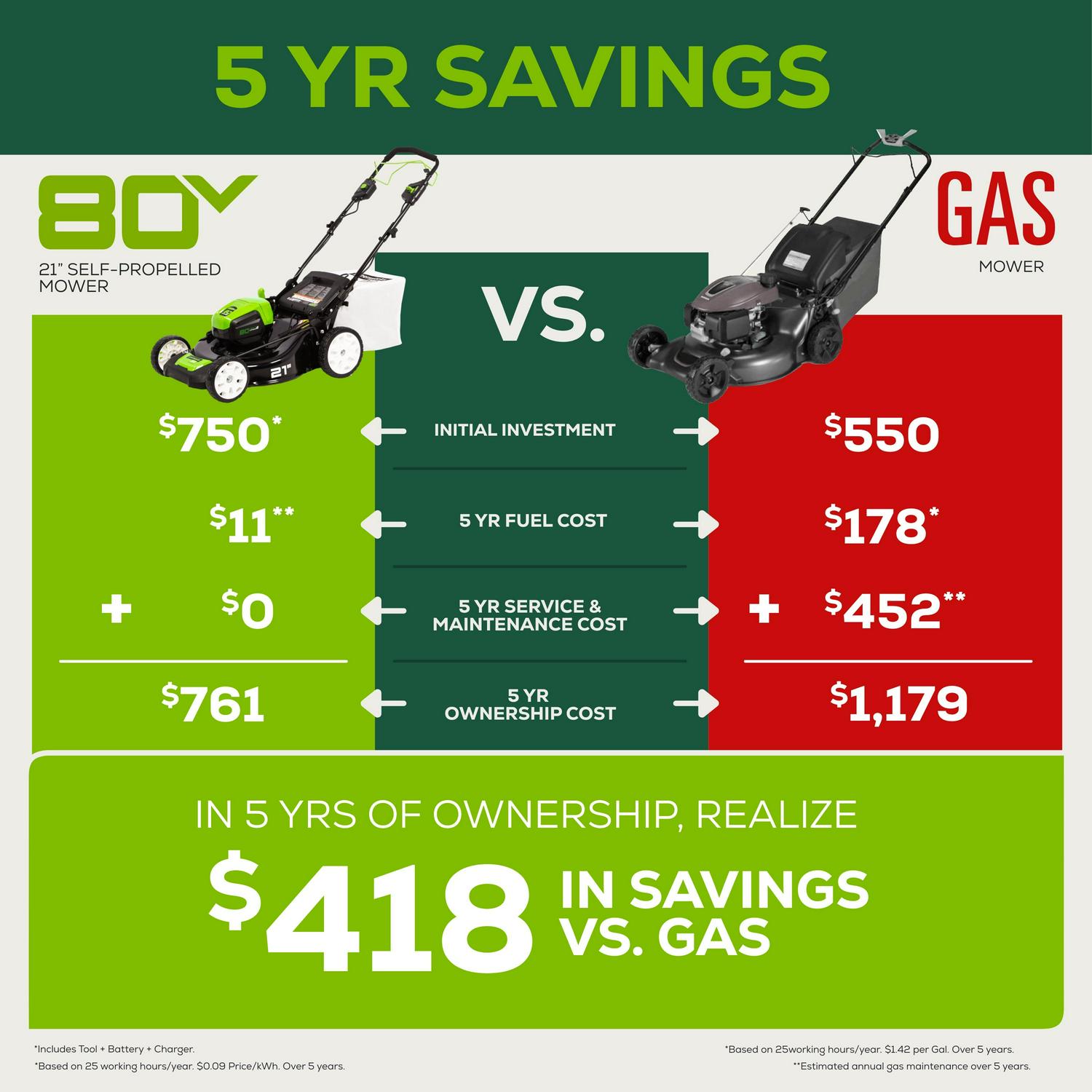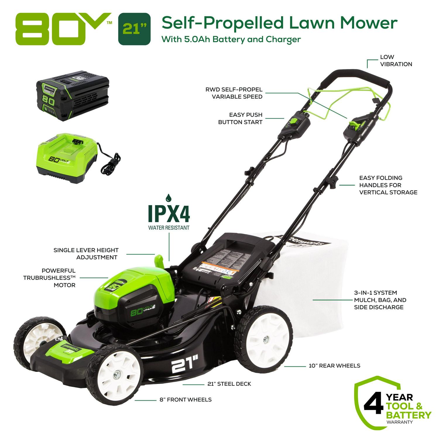 – New Greenworks 80V 21″ Self Propelled Battery-Powered Mower: