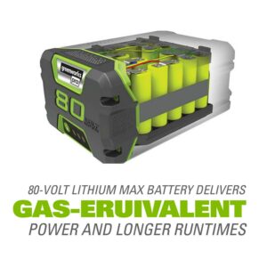 Greenworks is starting a revolution in outdoor power equipment starting with its Greenworks Pro 80V Li-Ion MAX system. Combined with our Digital Pro Brushless motor, this is the highest voltage, gas equivalent, commercial grade cordless outdoor power tool system in the industry. Featuring the simple electric start, light weight designs and quieter motor, professionals and heavy Dyers can now tackle tough jobs through variable terrain without the hassle of gas, fumes, heavy gear or delicate maintenance needs of gas powered engines. The evolution of Greenworks lithium-ion technology and designs have made it possible for professionals to get their jobs done by simply snapping in a battery and pressing a button while delivering high performance power and longer run time to get the job done. Greenworks Pro 80V Li-Ion MAX System features a Jet Blower, 18-inch Chainsaw, Hedge Trimmer, String Trimmer, Lawn Mower. With Greenworks, we understand that it’s not just a toolkit’s your life.
