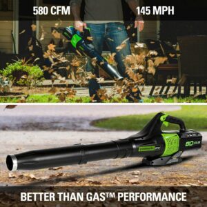 Features of Greenworks PRO 80V 580 CFM Cordless Brushless Axial Leaf Blower: