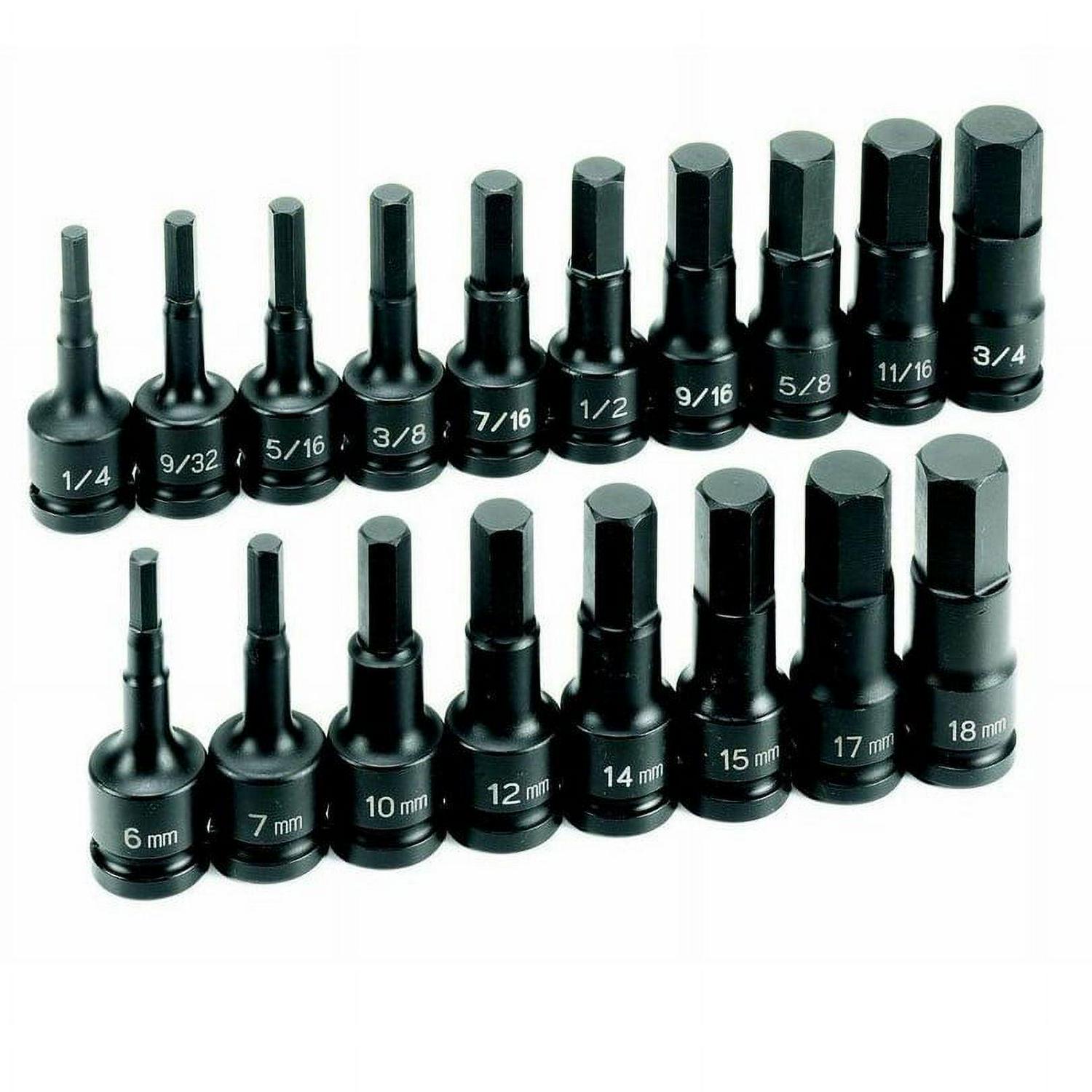 Grey Pneumatic supplies the world’s automotive, industrial, assembly, mining, maintenance, construction, and energy industries with heavy duty, high quality impact and specialty sockets. The 1598HC 18-Piece 1/2 in. Drive SAE/Metric Standard Hex Driver Set was created using the highest quality chrome molybdenum alloy steel and state-of-the-art manufacturing processes and equipment. Thorough and exact heat treatment, as well as rigid quality control, ensures the correct balance of strength and durability to deliver outstanding performance at the most competitive cost. Increased strength transfers the pressure from the thinnest part of the socket wall toward the thicker section, resulting in increased strength Increased torque allows up to 20% more torque to be applied than on standard hex impact sockets A reduction in wall thickness increases socket’s capability of being used in tight areas Sockets grip the fastener across a broader contact area, reducing the chance of rounding off fasteners 6mm 1/2 in. Drive Metric Standard Hex Driver Set – 2906M 7mm 1/2 in. Drive Metric Standard Hex Driver Set – 2907M 10mm 1/2 in. Drive Metric Standard Hex Driver Set – 2910M 12mm 1/2 in. Drive Metric Standard Hex Driver Set – 2912M 14mm 1/2 in. Drive Metric Standard Hex Driver Set – 2914M 15mm 1/2 in. Drive Metric Standard Hex Driver Set – 2915M 17mm 1/2 in. Drive Metric Standard Hex Driver Set – 2917M 18mm 1/2 in. Drive Metric Standard Hex Driver Set – 2918M 1/4 in. 1/2 in. Drive SAE Standard Hex Driver Set – 2908F 9/32 in. 1/2 in. Drive SAE Standard Hex Driver Set – 2909F 5/16 in. 1/2 in. Drive SAE Standard Hex Driver Set – 2910F 3/8 in. 1/2 in. Drive SAE Standard Hex Driver Set – 2912F 7/16 in. 1/2 in. Drive SAE Standard Hex Driver Set – 2914F 1/2 in. 1/2 in. Drive SAE Standard Hex Driver Set – 2916F 9/16 in. 1/2 in. Drive SAE Standard Hex Driver Set – 2918F 5/8 in. 1/2 in. Drive SAE Standard Hex Driver Set – 2920F 11/16 in. 1/2 in. Drive SAE Standard Hex Driver Set – 2922F 3/4 in. 1/2 in. Drive SAE Standard Hex Driver Set – 2924F Molded Storage Case