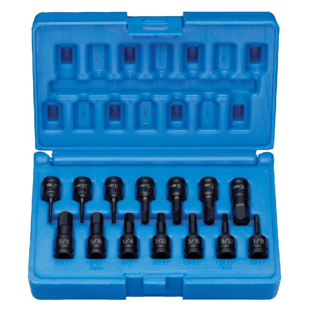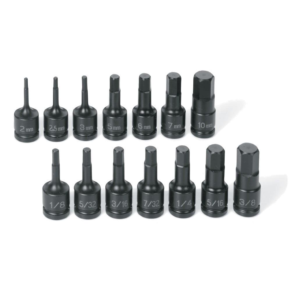 – 1/4″ 14 Piece Fractional and Metric Hex Impact Driver Set Contains: 1/8″, 5/32″/ 4mm, 3/16″, 7/32″, 1/4″, 5/16″/ 8mm, 3/8″, 2mm, 2.5mm, 3mm, 5mm, 6mm, 7mm, 10mm.Specifications