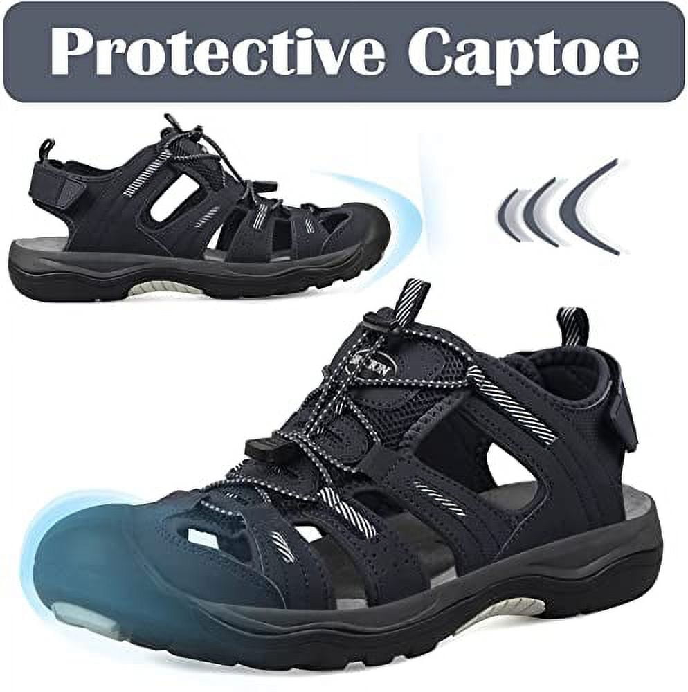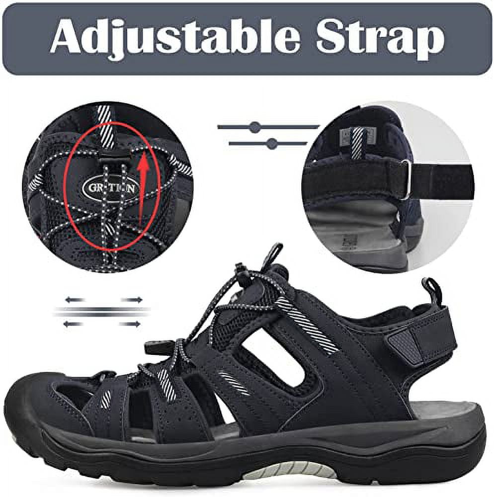 GRITION Mens Outdoor Hiking Sandals Closed Toe Waterproof Fisherman Walking Water Sandals Lightweight Athletic Shoes Easy Wearing Adjustable Protection Summer navy