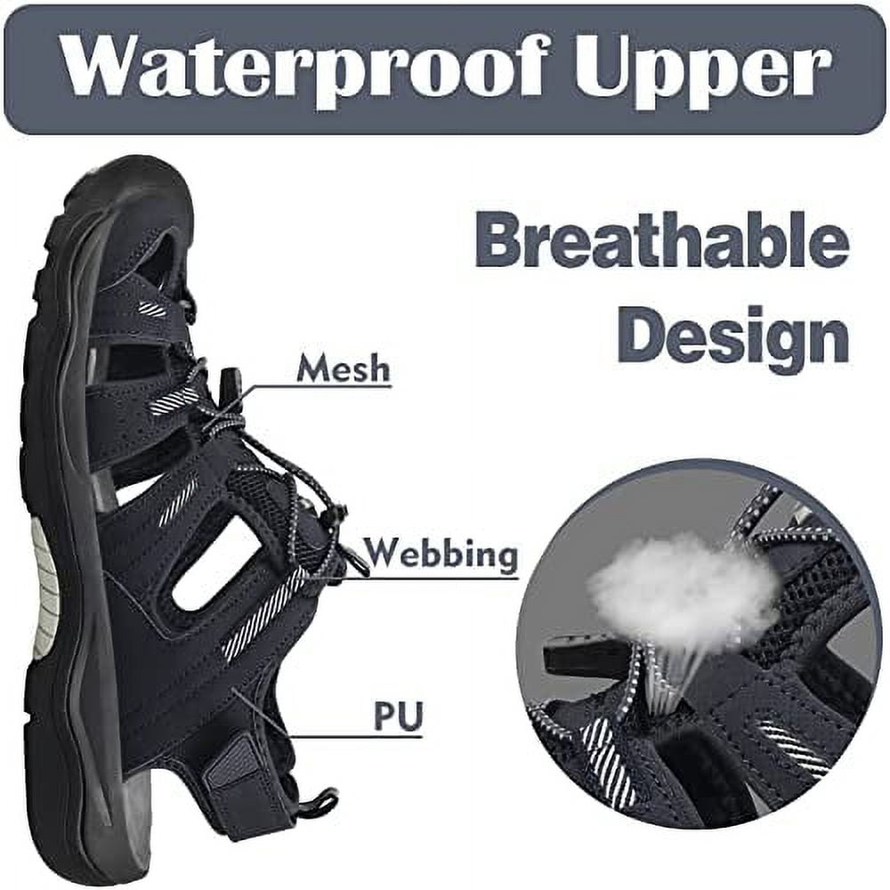 GRITION Mens Outdoor Hiking Sandals Closed Toe Waterproof Fisherman Walking Water Sandals are designed for daily wearing and travel. They are waterproof and slisp-resistant. The close toe design could protect your toes well.