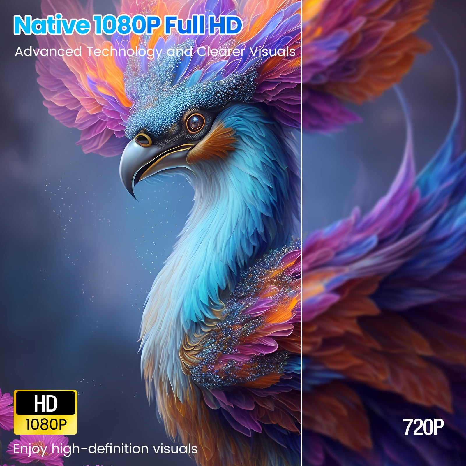 Projector with Bluetooth and WiFi Upgraded 1080P HD Projector & 12000 Lumens Faster & Stable 2.4G/5G WiFi & Bluetooth 5.0 Built-In Apps Auto Focus & Auto Obstacle Avoidance & Keystone Correction Extensive Connection Availability HiFi Stereo Speaker 100000 Hours Lamp Life & Warranty