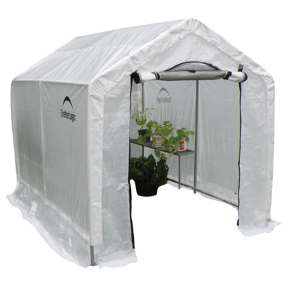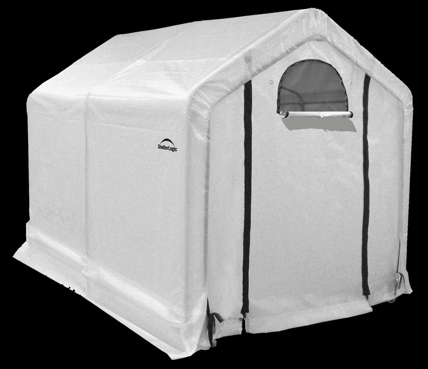 Start seedlings or extend your growing season with the GrowIT 6 x 8 ft. Backyard Greenhouse with Integrated Shelving. This easy-to-assemble, compact Greenhouse is constructed with high quality steel and features 4 ft. shelving on both sides for built-in staging of plants. Screen vents at both ends provide airflow and temperature control. The translucent fabric allows a significant amount of diffused light to reach the plants.1 in. / 2,5 cm high-grade steel frame with Premium powder coat finish resists chipping, peeling, rust and corrosion.. Triple layer, heat bonded ripstop translucent cover is waterproof and UV-treated inside and out. Provides enhanced illumination designed specifically for plant growth and protection.. The translucent fabric allows a significant amount of diffused light to reach the plants, while reducing the amount of harmful UV light.. The diffused light reduces shadows and scorching to provide consistent lighting for all exposed parts of the plant, not just the tops.. The GrowIT fabric is a good thermal barrier providing good insulation for plants while preventing over-heating, which requires less water, ventilation accessories, and attention.. The Greenhouses can be assembled in about an hour and a half and can be moved with as little as two people as growing season demands change.. 15 in. / 38,1 cm Auger Anchors are included for proper anchoring. See included Anchor Guide for more info.. Skip the middle man and grow what you eat: use a greenhouse to provide your family reliable year-round access to fresh fruits and veggies
