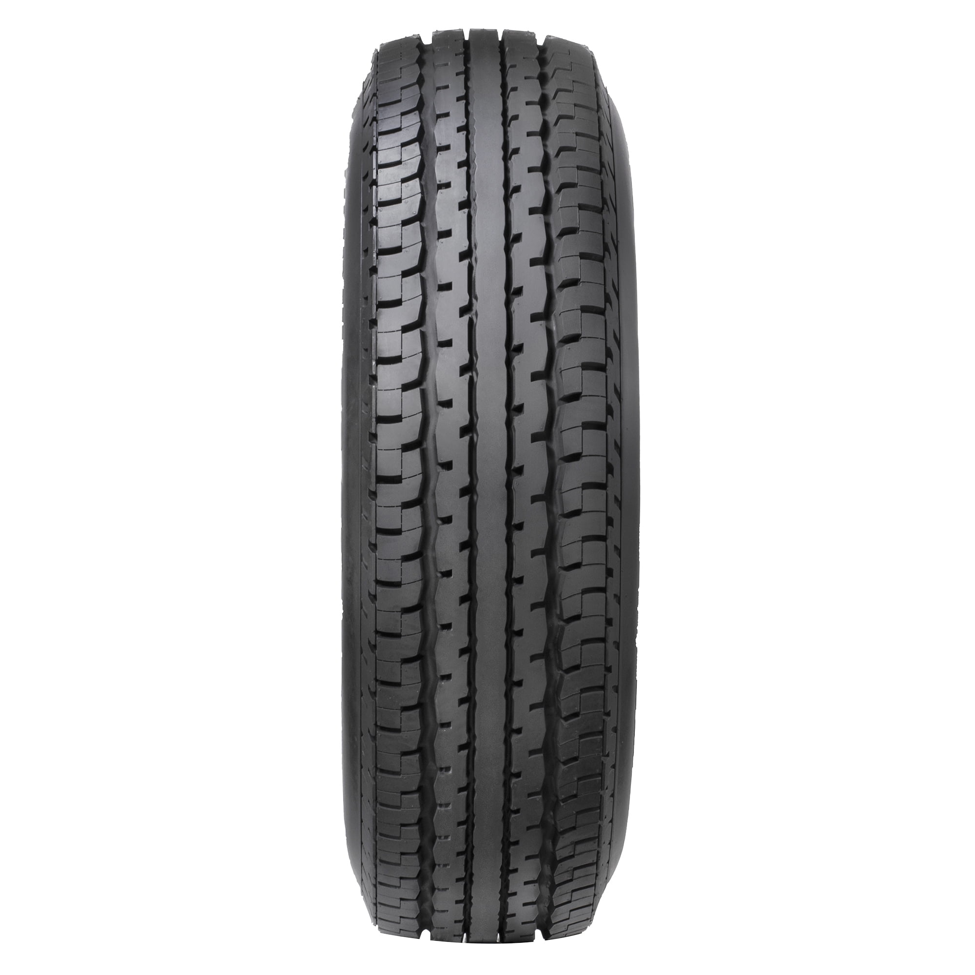 Full width tread improves road contact for strong grip and better braking performance High modulus steel belts enhance handling, stability and puncture resistance Robust shoulder blocks increase traction and stability High tension polyester casing improves durability and reduces trailer sway Jointless nylon edge plies increase strength and treadwear