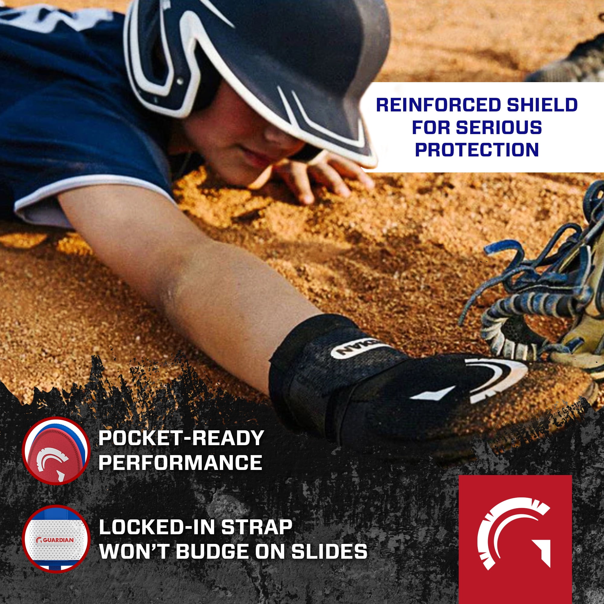 ULTIMATE HAND AND WRIST PROTECTION: Our baseball sliding mitts for adults and youth feature premium protective shields that cover both hand and wrist, reducing the risk of injury while base running. Available in cool, drippy designs to keep you stylish on the field. TAILORED DESIGN FIT: Enjoy exceptional comfort and fit with our cool sliding mitts for baseball, designed for both left and right hands. Easy to put on, it provides side-to-side flexibility while supporting your wrist to prevent jamming. Slide confidently with the hand you prefer, thanks to its versatile and user-friendly design. QUICK WRAP TIME: The industry-leading short strap design ensures swift wrap-around on base. With sturdy wrist wrap Velcro and steel wrist supports, our youth sliding mitt offers enhanced wrist flexibility and support. Suitable for both left and right hands, it’s perfect for kids (ages 9-12) and adults, providing reliable protection and comfort. POCKET-SIZED PERFORMANCE: Our baseball sliding glove slips effortlessly into the back pocket of most baseball pants, ready for action. Ideal for swift infield maneuvers, this sliding mitt adult and kids sliding mitt, allows players to gear up quickly on base, ensuring confident base running. Perfect for youth and adult players seeking agility and protection during every play. TRUSTED BY TOP PRO AND PREP ATHLETES: Our baseball hand guard is a favorite among professional and collegiate athletes like Brandon Marsh, Jorge Mateo, Yandy Diaz, Amed Rosario, and more. Over 150 pro athletes across every MLB organization trust Guardian on the field for its superior safety features.