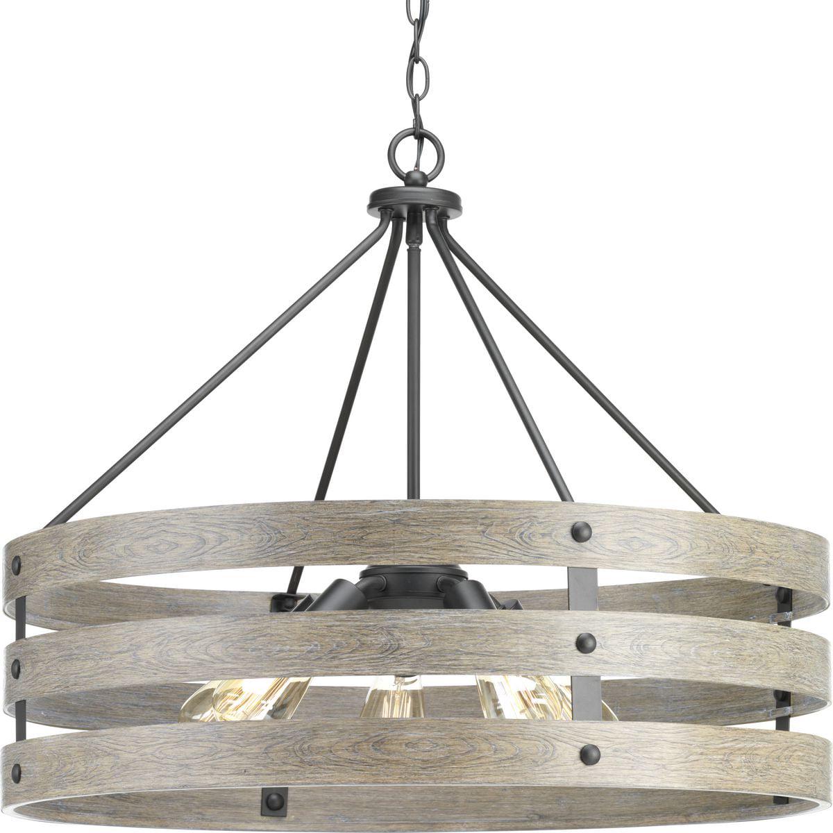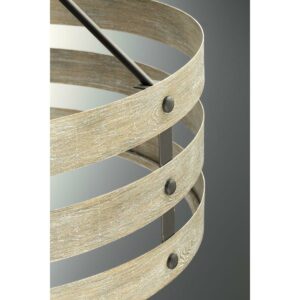 Select the perfect farmhouse décor with a pendant light from the Gulliver Collection. Three circular bands wrap together like a country basket for an open-frame design. The hanging light is coated in a gray weathered faux wood finish with graphite metal accents for rustic character. Ideal for vintage filament bulbs (not included). Compatible with dimmable bulbs.