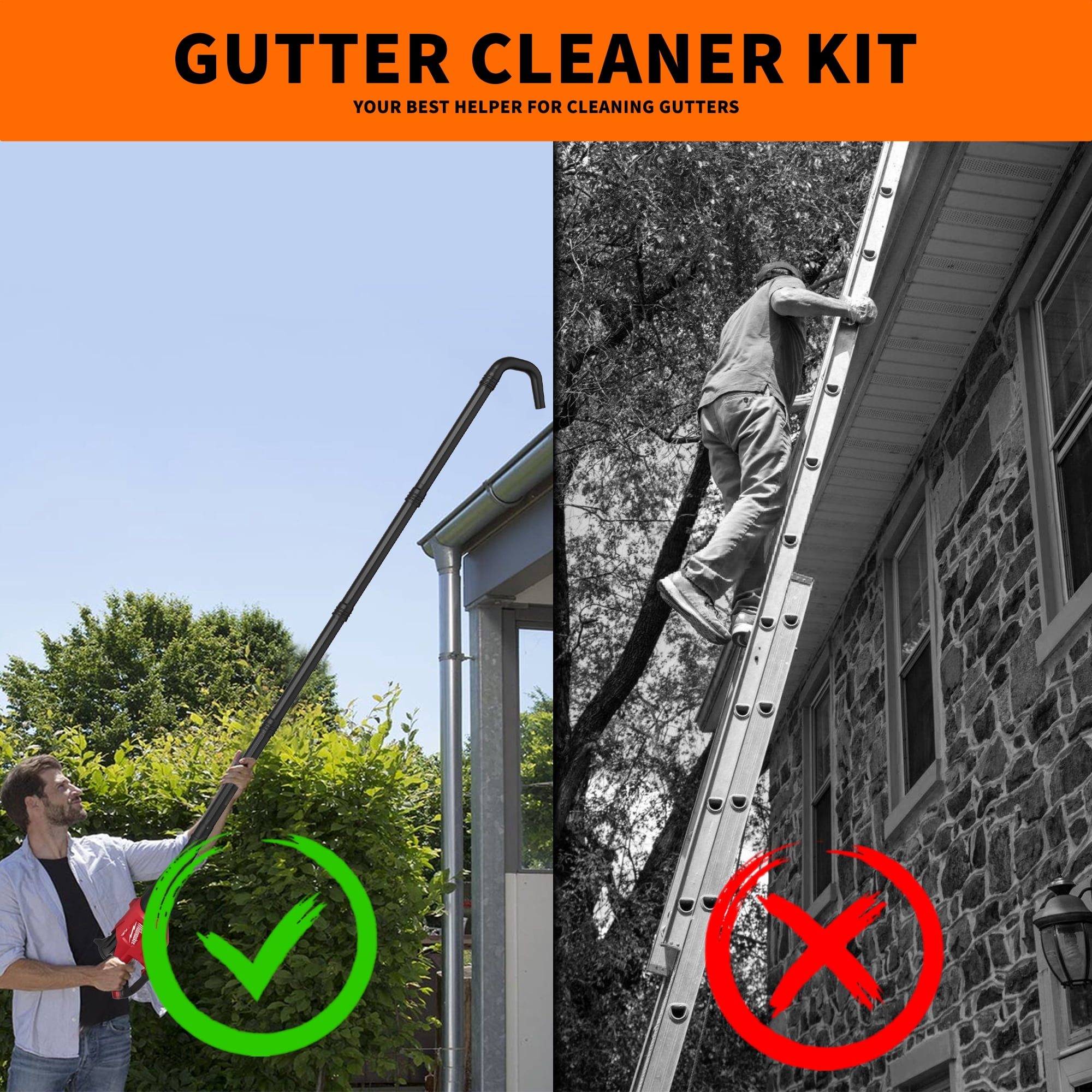 Gutter Cleaning Tool Leaf Blower Gutter Attachment Gutter Cleaning Kit Gutter Cleaning Attachment Kit with 11 ft for Leaf Blowers. Boxlegend Universal Gutter Cleaning Kit can be used to remove accumulated leaves, pine needles, and more from your gutters. Gutter Cleaning Attachment Kit are compatible with most all brand blowers. You can safely clean gutter while standing on the ground, effectively improving clogged gutter. Gutter cleaning tubes are easy to assemble and operate and provide powerful airflow so you can clean your gutters with ease.