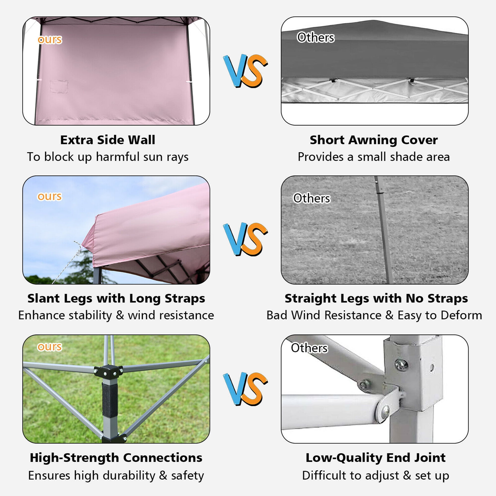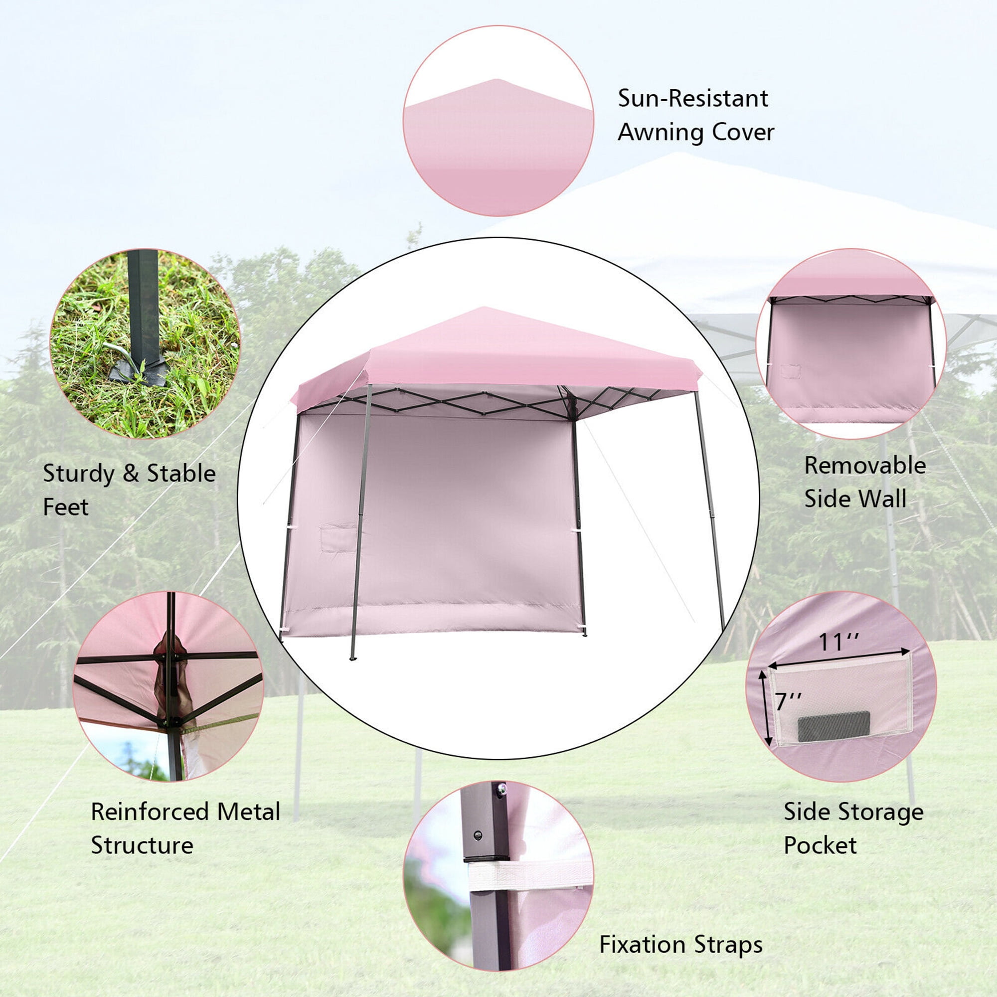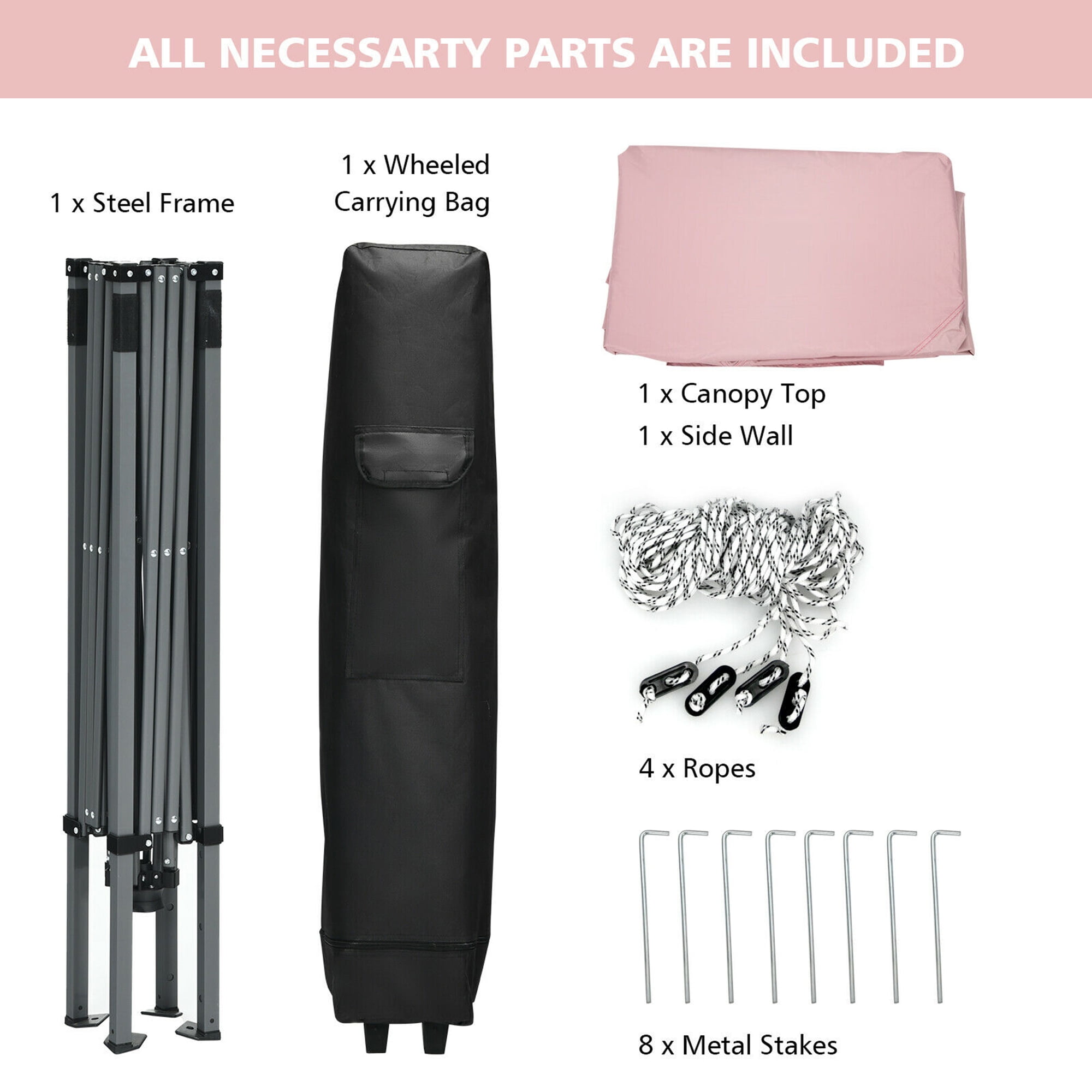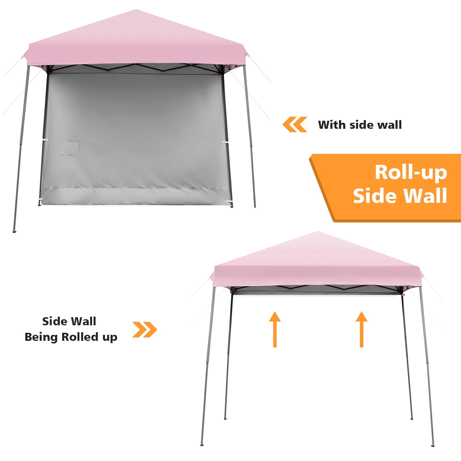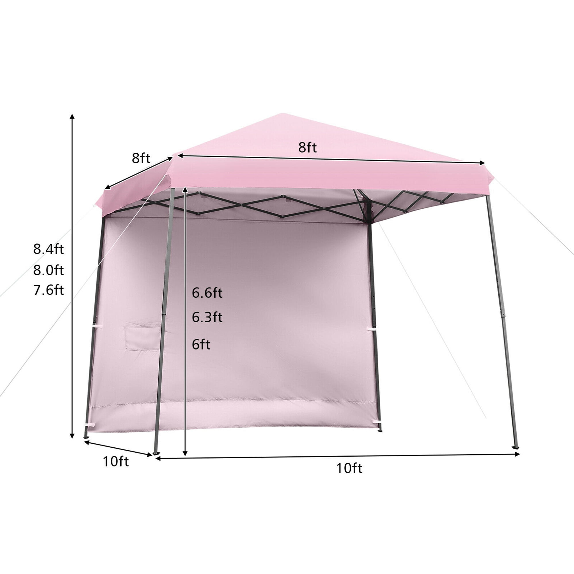 Gymax 10ft X 10ft Pop Up Tent Slant Leg Canopy W/ Roll-up Side Wall Pink