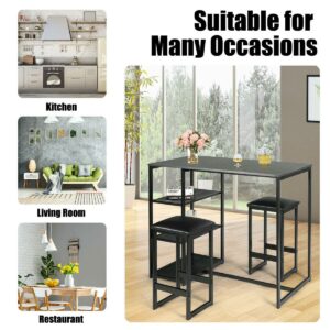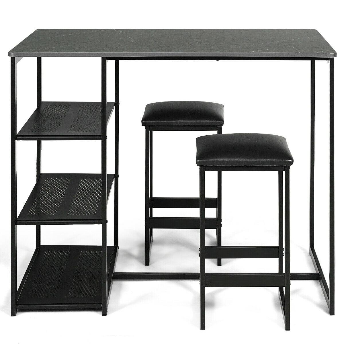 Gymax 3 Piece Pub Set Industrial Style Faux Marble Top Table and 2 Stools Dining Set