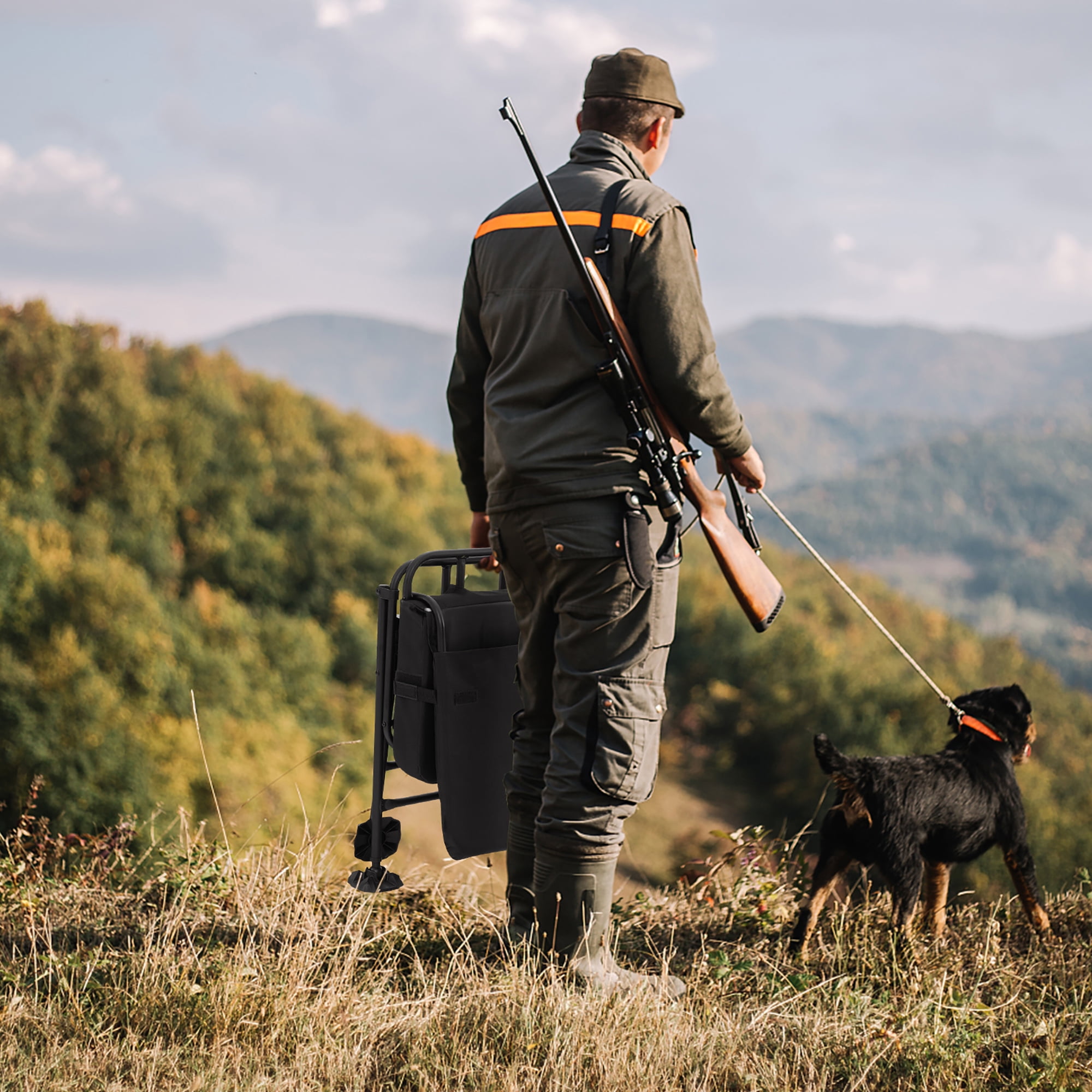 Description: Professional folding hunting chair! Concentration is the most desirable quality when hunting outdoors. Our hunting chair has a 360 degree silent rotation system, which makes no noise to disturb the animals and allows you to observe the prey in all directions. And the camouflage design of the cushion can also help you hide yourself well. In addition, the seat is equipped with sponge filled cushions and a comfortable backrest, which can greatly relax your hips and back, so that you don’t have to be distracted by the fatigue of sitting for a long time. And the hunting chair, made of a sturdy metal frame, is equipped with 4 large duck foot pads that work well on uneven or soft ground. Features: Smooth and quiet 360 degree rotation to prevent startle prey Convenient strap helps secure the folding seat tightly High back design enable you have a relaxing hunting Specification: Color: Black Material: Sponge, Steel, Oxford Fabric, PVC Overall size: 19” x 22” x 35” (LXWXH) Seat Size: 16” x 12.5” x 3” (LXW) Folding Size: 25.5” x 19” x 10” (LXWXH) Net weight: 13 lbs Max Weight : 330 lbs Package includes: 1 x Swivel Hunting Chair 1 x Instruction