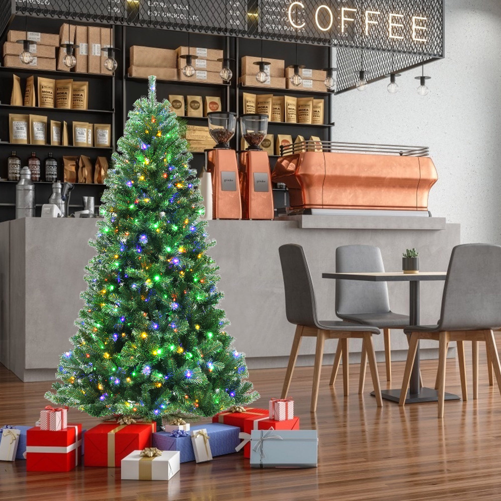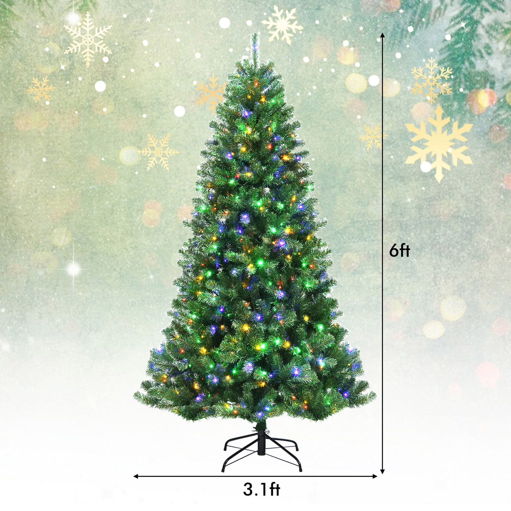 Gymax 6 FT Pre-lit Artificial Christmas Tree Hinged Xmas Tree w/ 9 Lighting Modes