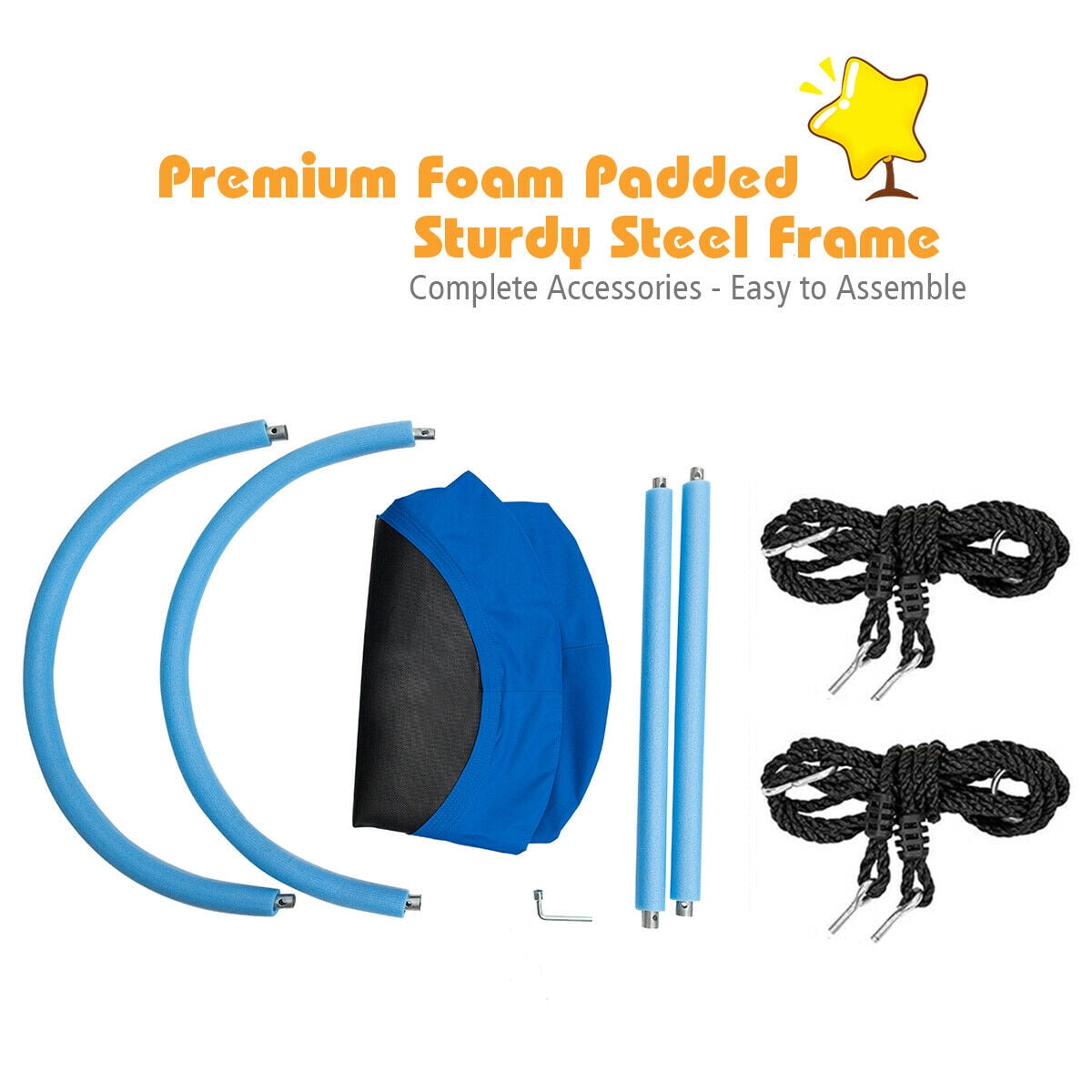 Description: This oval swing is made of high-quality materials, which is sturdy and durable. With the adjustable swing rope at 40”-63”, this swing is suitable for different venues and spaces of different sizes. With 700lbs weight capacity and giant 60 inches large space, it is roomy enough for multiple children to swing and play together! The swing provides a relaxing spot for you and your kids to play, read, listen to music. And it also helps kids to build the friendship and promotes parent-child interaction. Moreover, this swing not only allows you to experience the joy of flying, but also can build your body and balance skill. Features: Made of 600D oxford fabric and steel construction ensure a safe guarantee Multi-ply rope and 8mm bolts ensure a tight and secure connection Provide a high load-bearing capacity up to 700lbs 40”- 63” adjustable heights to satisfy various needs Specification: Color: Blue Material: PP + 600D Oxford Cloth + Steel Frame + EPE Foam Product Size: 60 ” X 32” (L x W) Adjustable Height: 40”-63” Net Weight: 8.5lbs Weight Capacity: 700lbs Package includes: 1 X Oval Swing 1 X Instruction