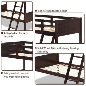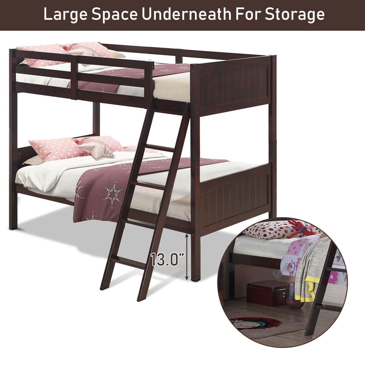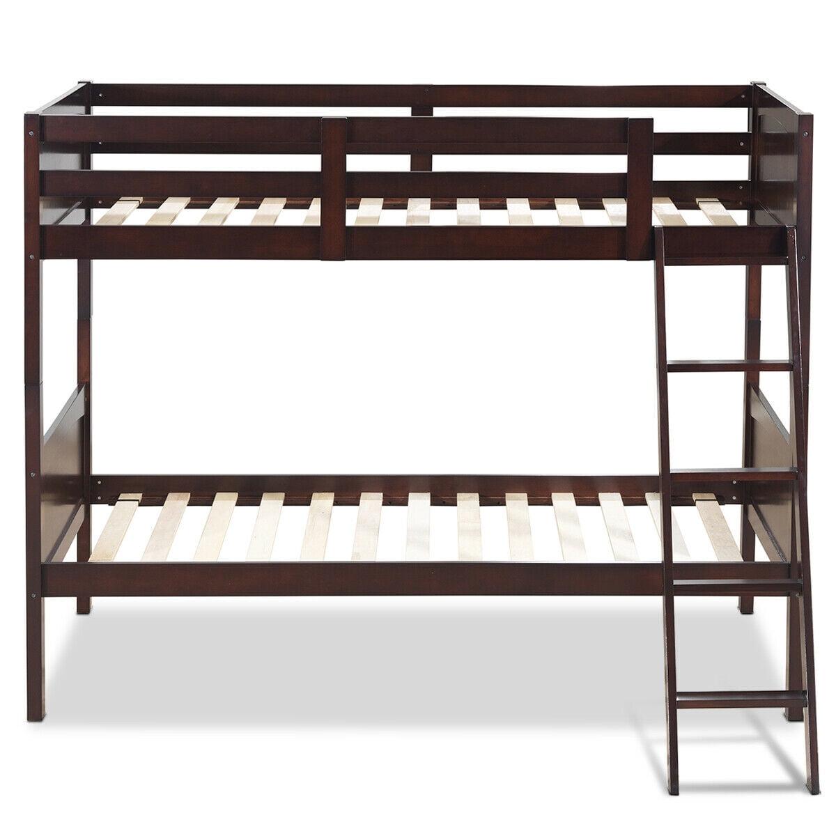Gymax Espresso Wooden Twin Over Twin Bunk Beds Convertable 2 Individual Twin Beds