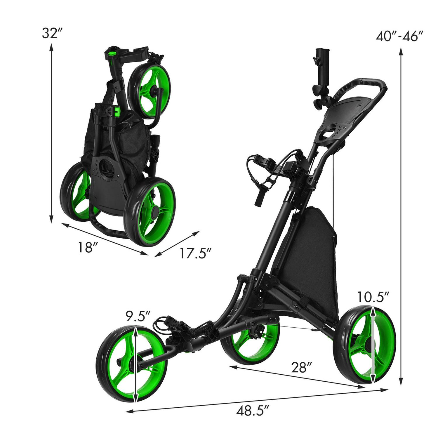 Gymax Foldable 3-Wheel Golf Push and Pull Cart Trolley with Adjustable Handle, Green