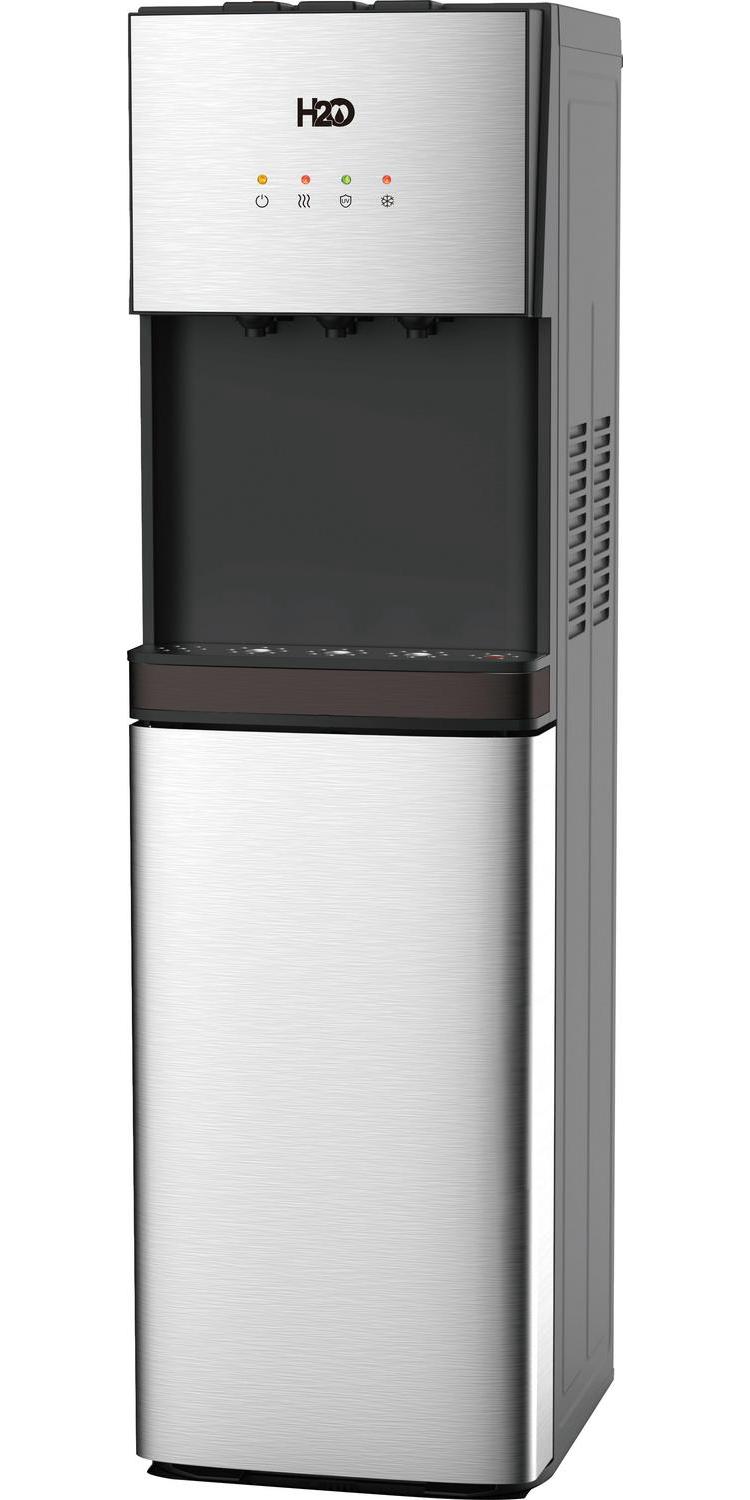 With H2O stainless steel water dispenser in your home, clean and refreshing water is only a few steps away. Bottom load floor-standing water dispenser offers hot and cold and normal water and can be used with 3.6 L water bottles. LED indicator lights activate when the optimum water temperature is ready for dispensing. This water dispenser is incorporated with an Energy Star compliant high-efficiency compressor and stainless steel reservoirs allowing this water cooler to provide great-tasting cold and hot water on demand. The hot water push button even features a child safety lock, keeping kids safe while giving you your ideal temperature water and a removable drip tray for easy cleaning. It can provide 40-48° F cold water and 185° F Hot water, with ultra-high water dispensing area 10.2 inches. Our dispenser can provide 0.18 gal / 0.8 L hot water capacity and 0.57 gal / 3.6 L cold water capacity. Stainless steel reservoir prevents mineral buildup for better-tasting water. Its drip tray is removable for your easy cleaning.
