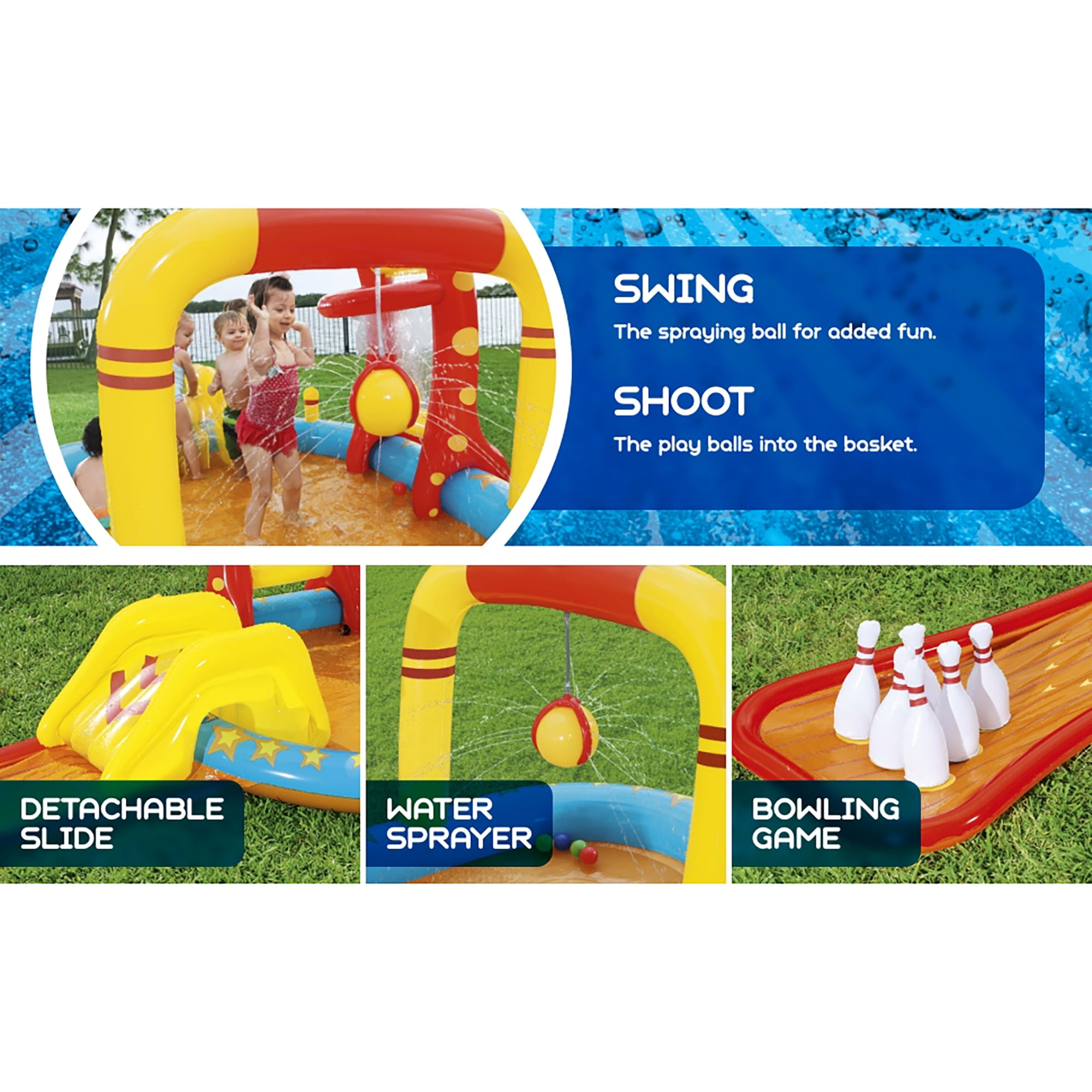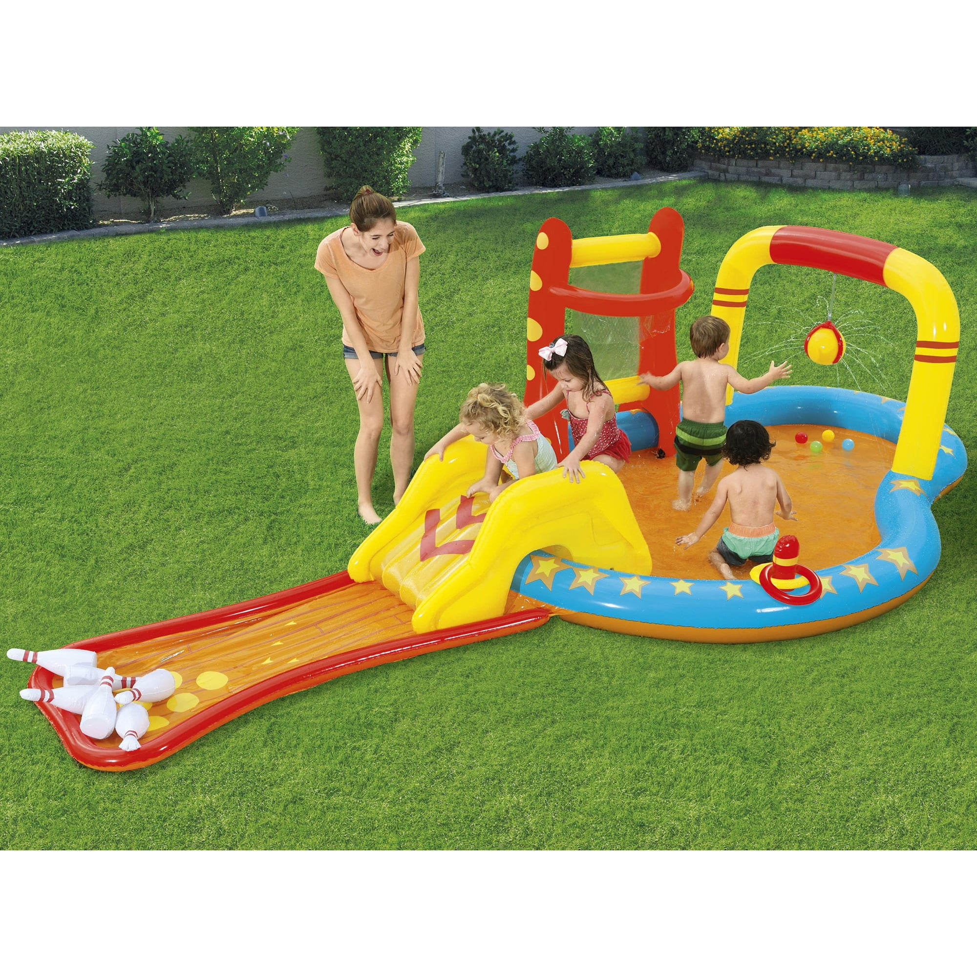 Bestway: H2OGO! Lil’ Champ Play Center – Inflatable Sports Activity & Mini Waterpark, Sprayer-Slide-Kiddie Pool, Bowling-Basketball-Ring Toss, Kids 3+