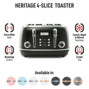 Haden Heritage 4-Slice Wide Slot Toaster, Black / Chrome – 75096