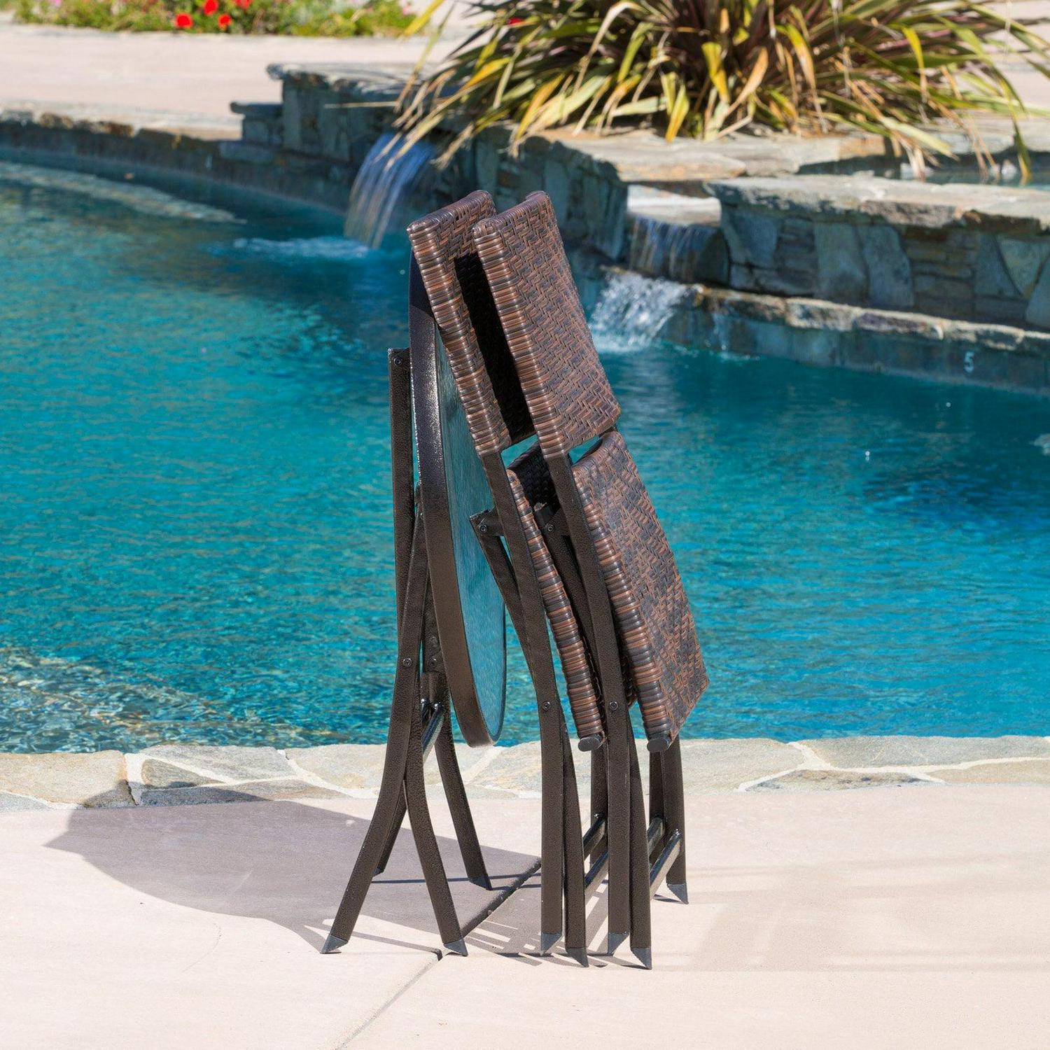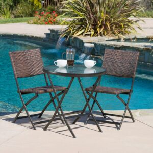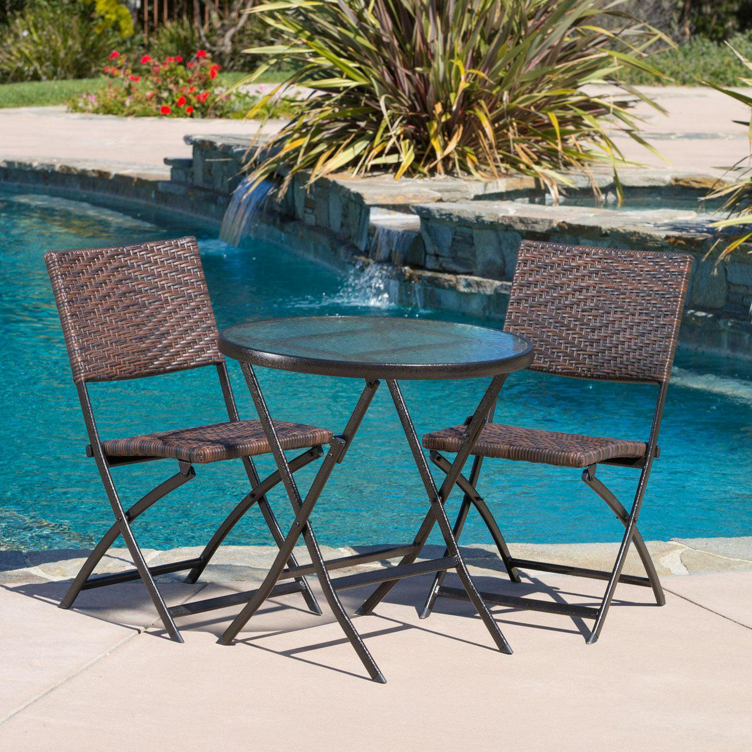 Enjoy your morning cup of coffee seated in the Halman Wicker 3 Piece Round Bistro Set. This traditional bistro set features a folding design that makes it easy to stow the whole thing away between uses. The diamond pattern on the wicker seat and backs give this set a traditional look.