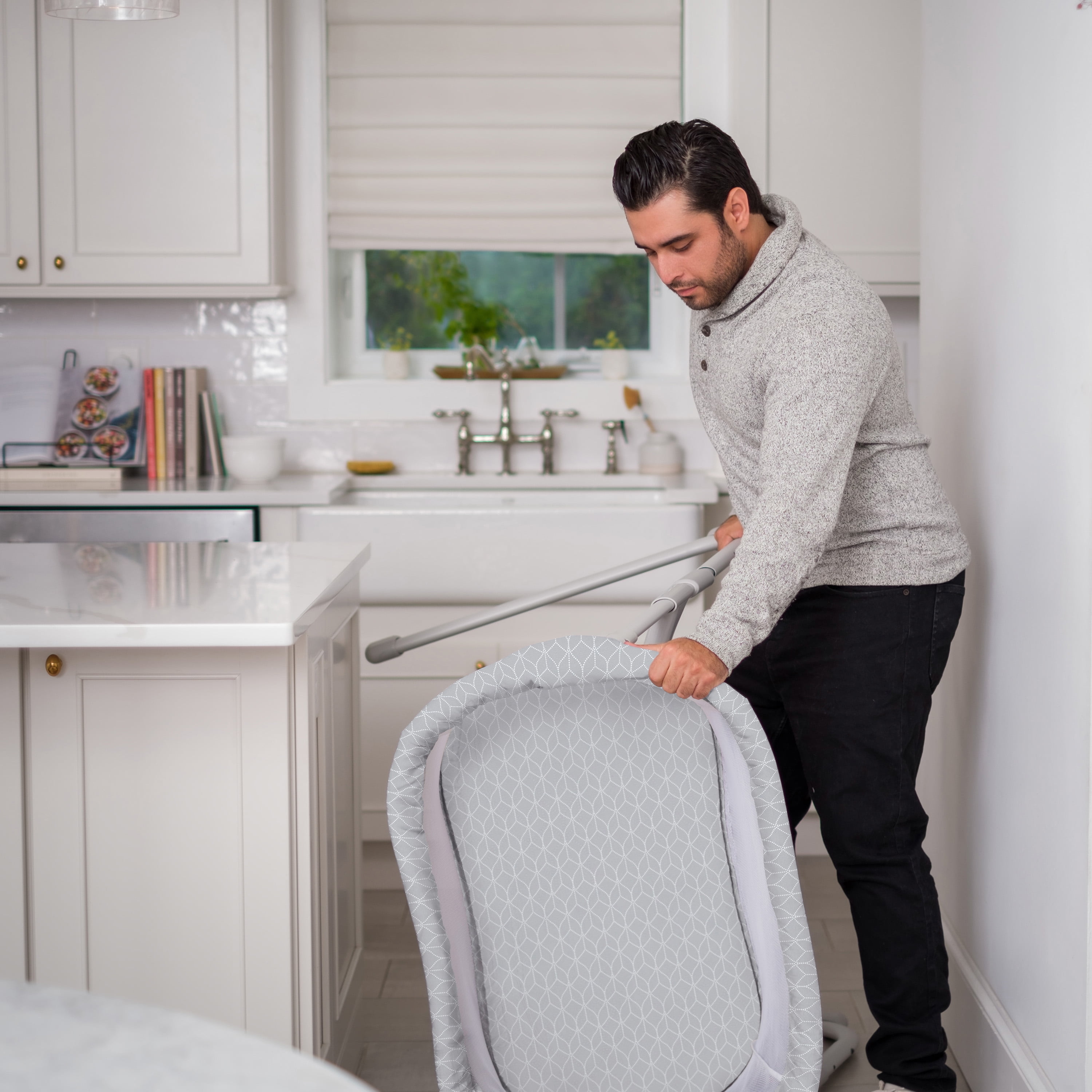 Looking for a more flexible safe sleep solution? Meet HALO BassiNest Flex. With a lightweight design, it can be easily moved around the house so you always have a safe sleep space. Folds compactly for safe sleep on-the-go, whether on vacation or visiting family. Flex features HALO’s signature lowering wall, which makes it easy to access your babe without bending or twisting. Height-adjustable base fits most standard adult beds. Includes mattress pad. Sheets sold separately. BassiNest is JPMA certified and independently tested to meet and/or exceed all U.S. Consumer Products Safety Commission safety standards.