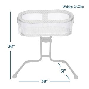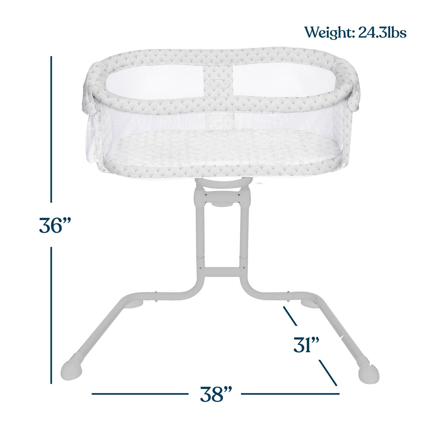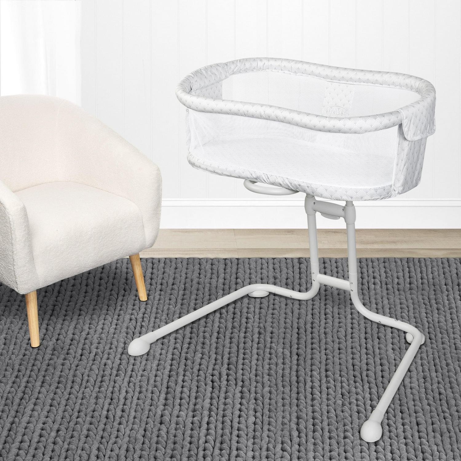 Safe, close sleep is easier with HALO BassiNest Glide sleeper. It s the only bassinet that glides over your bed, allowing you to sleep inches away from them. Designed with a firm, flat sleeping surface that meets the Consumer Product Safety Commission s recommendations for safe sleep. Glide moves smoothly over any floor surface, including carpet. Includes HALO s signature lowering wall for easy access to your baby without bending or twisting. Plus breathable mesh walls for airflow and to see your infant at eye level. Height-adjustable base fits most standard adult beds. Includes fitted sheet and mattress pad. Compatible with all BassiNest accessories. BassiNest is JPMA certified and independently tested to meet and/or exceed all U.S. Consumer Products Safety Commission and Health Canada safety standards.